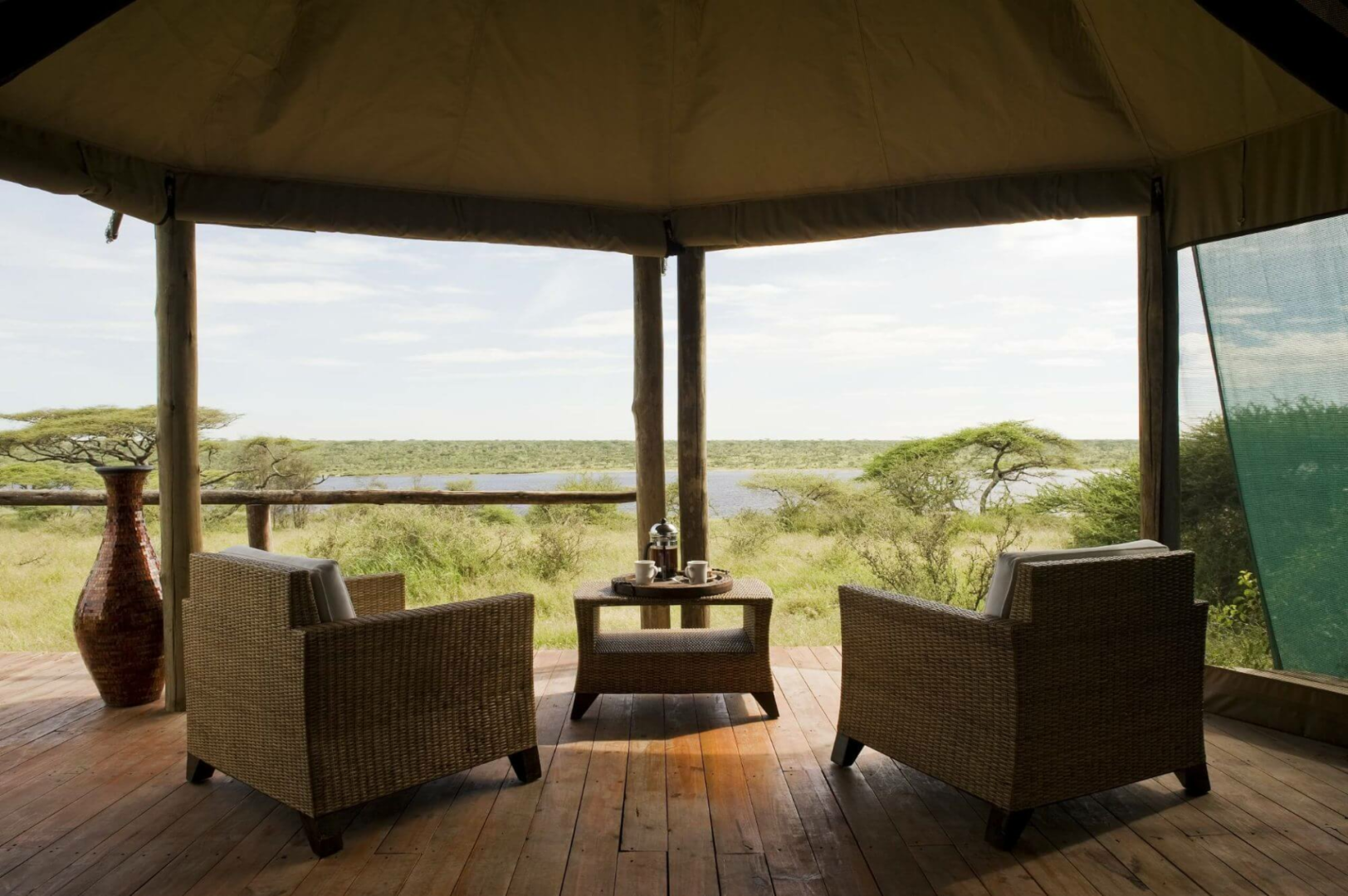 Die Lage mit Blick auf den Lake Masek inmitten der Migration zwischen Dezember und März ist unschlagbar gut.