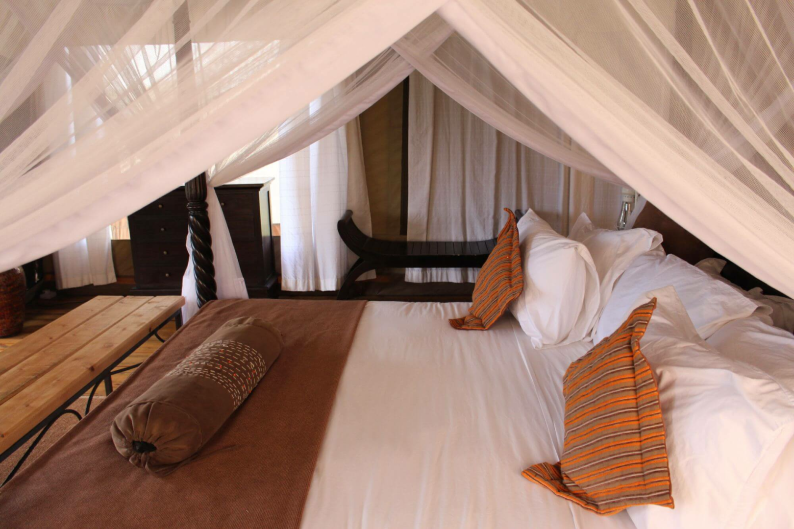 Mit nur sieben, sehr komfortabel eingerichteten Zelten, sowie einem Speisezelt und der typischen Lagerfeuerstelle stellt Kirurumu eine sehr dezente Unterkunft für die gehobene Mittelklasse dar.