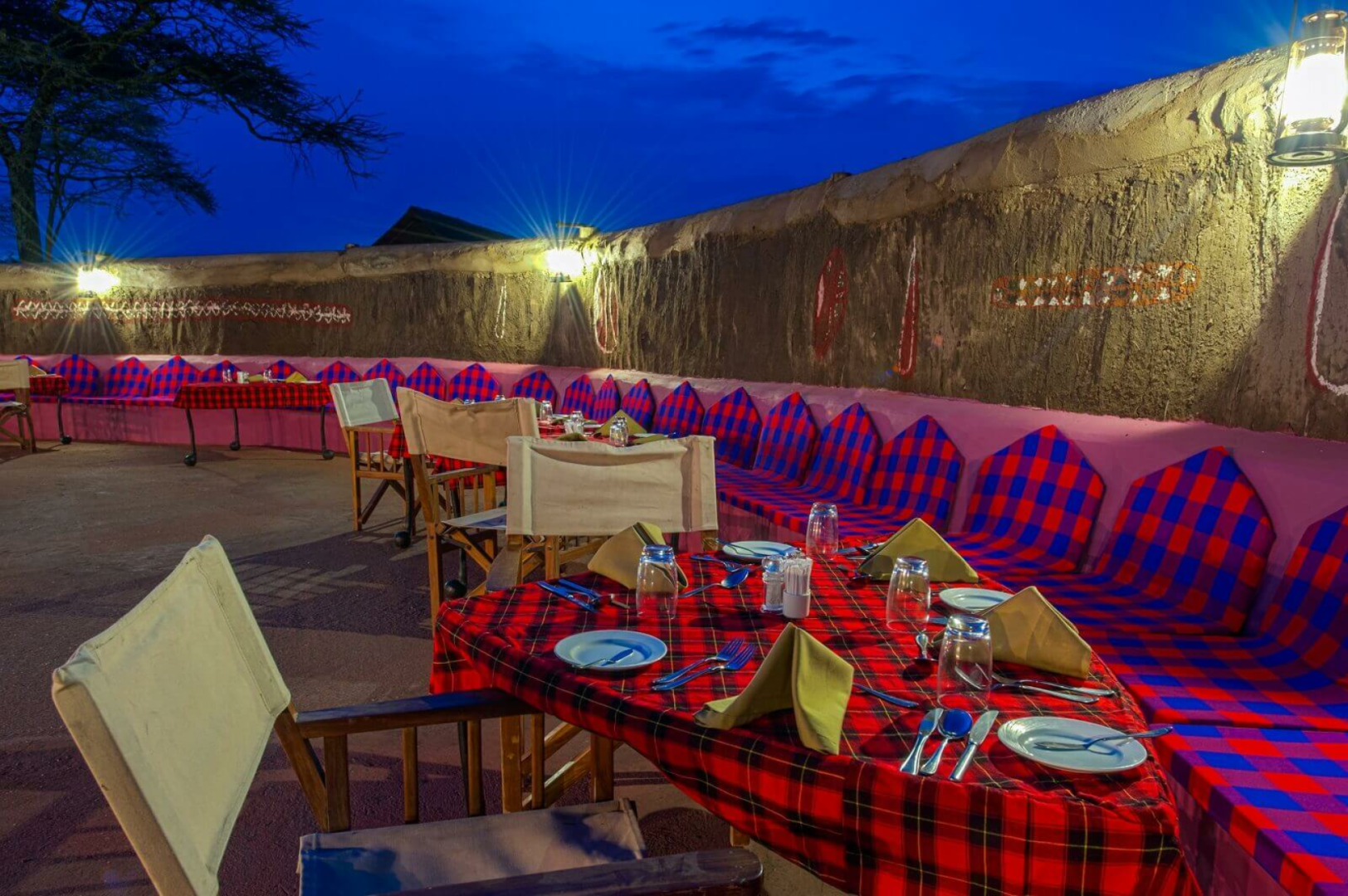 laden zum Verweilen ein. Im Zentrum des Geländes gibt es zudem einen tollen Grillbereich, wo nach vorheriger Anmeldung spezielle Grillabende mit Massai-Tänzen stattfinden.