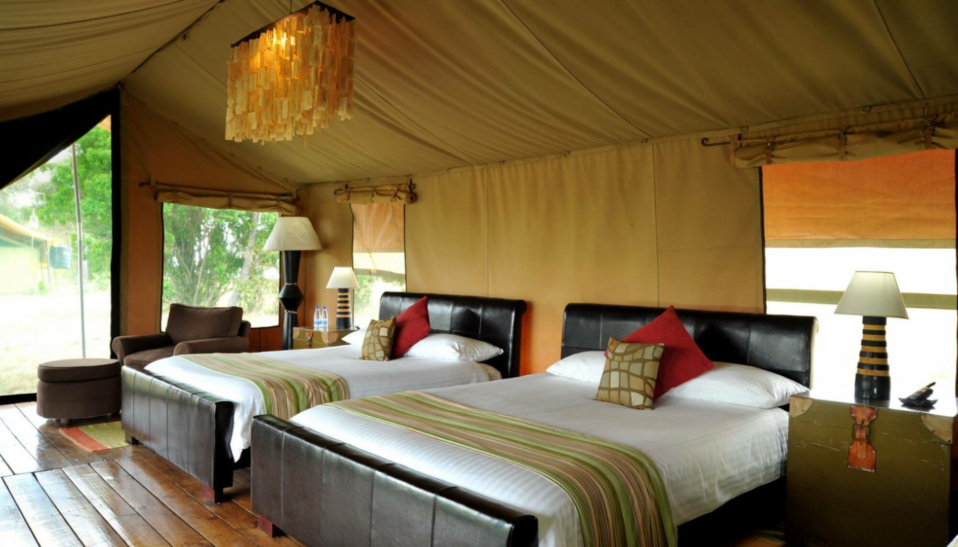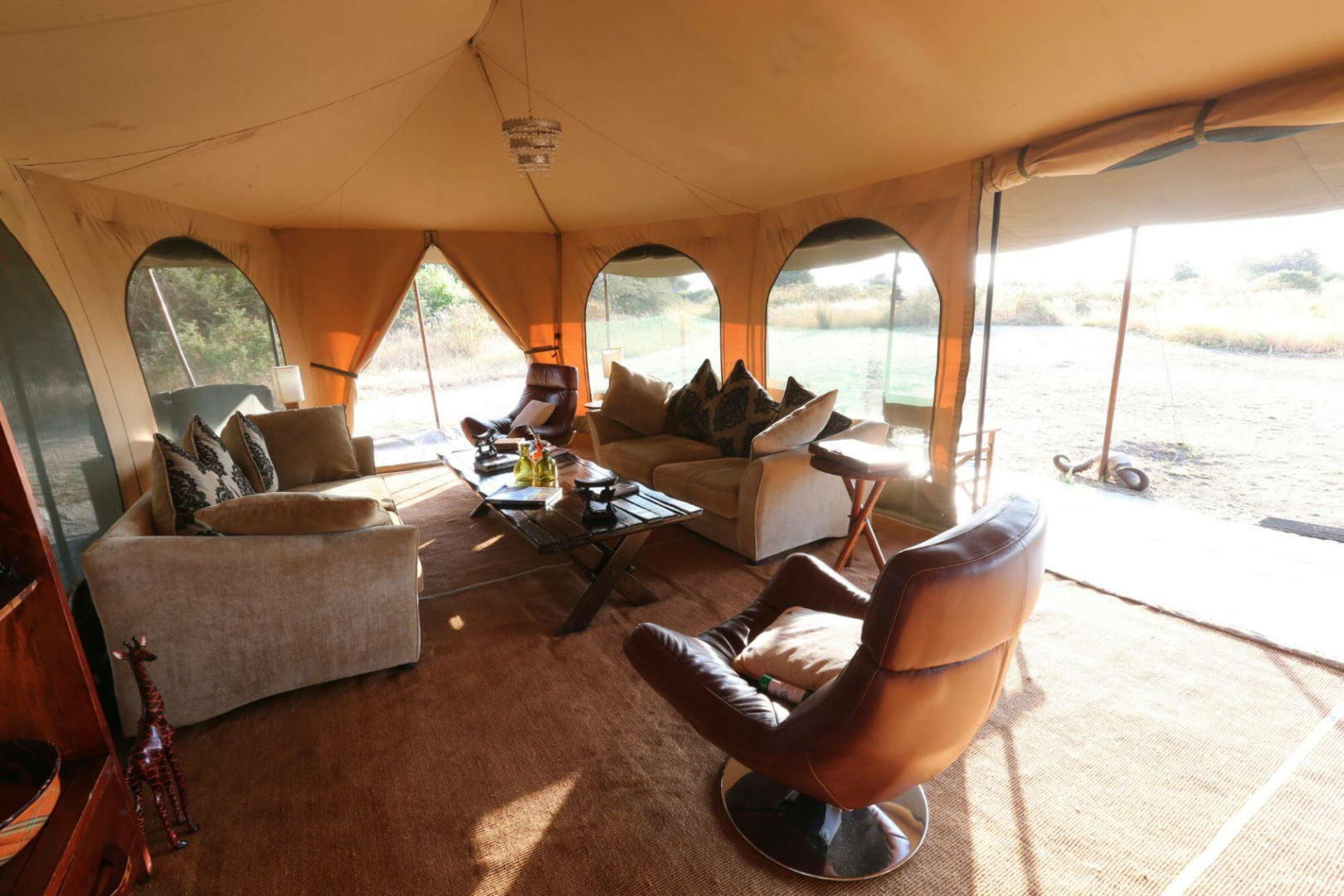 Mbugani bietet zwölf, hochwertige, sehr große Luxus-Zelte mit den klassischen Annehmlichkeiten eines typischen Safaricamps und noch ein paar zusätzlichen Extras (wie eine Sitzecke für das Frühstück.)