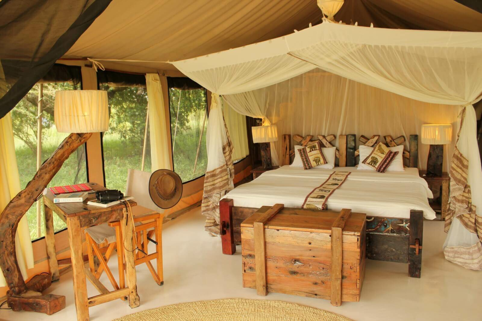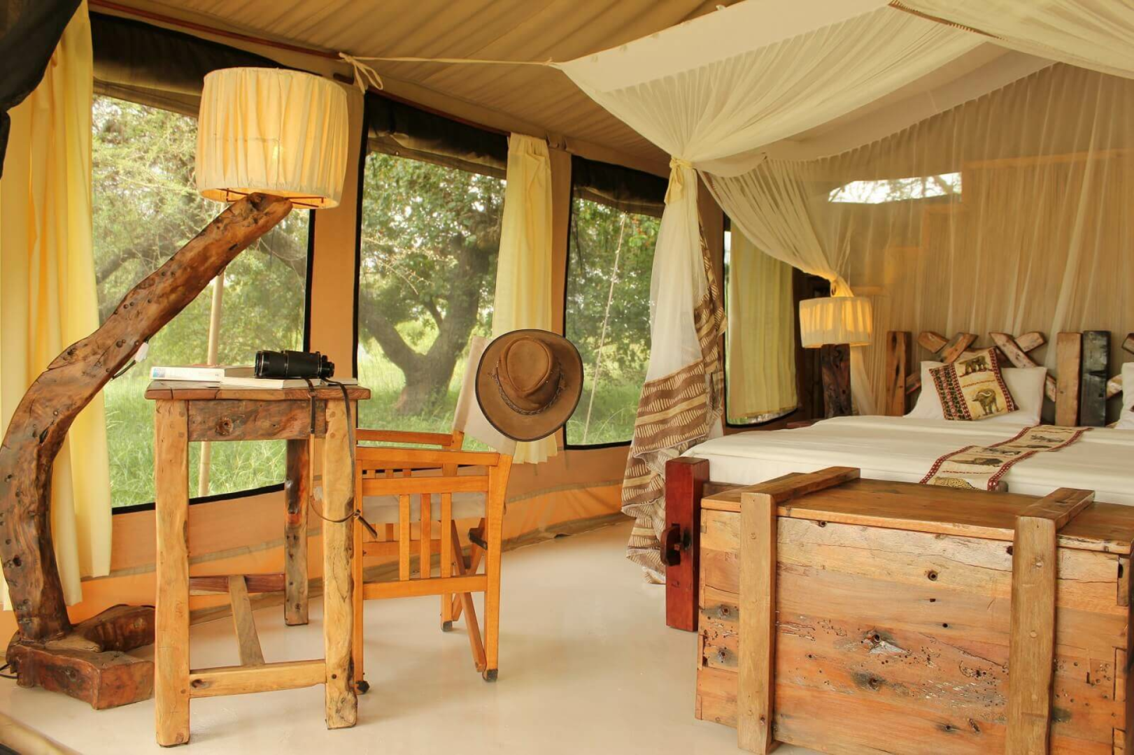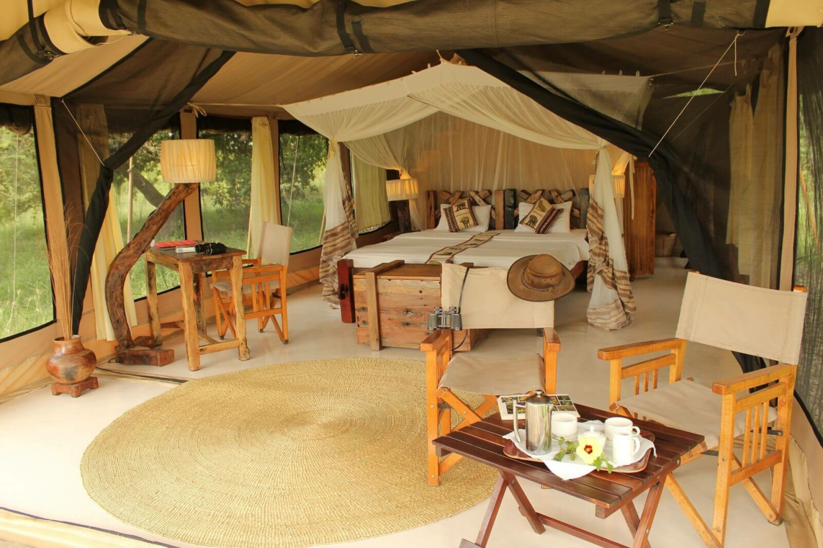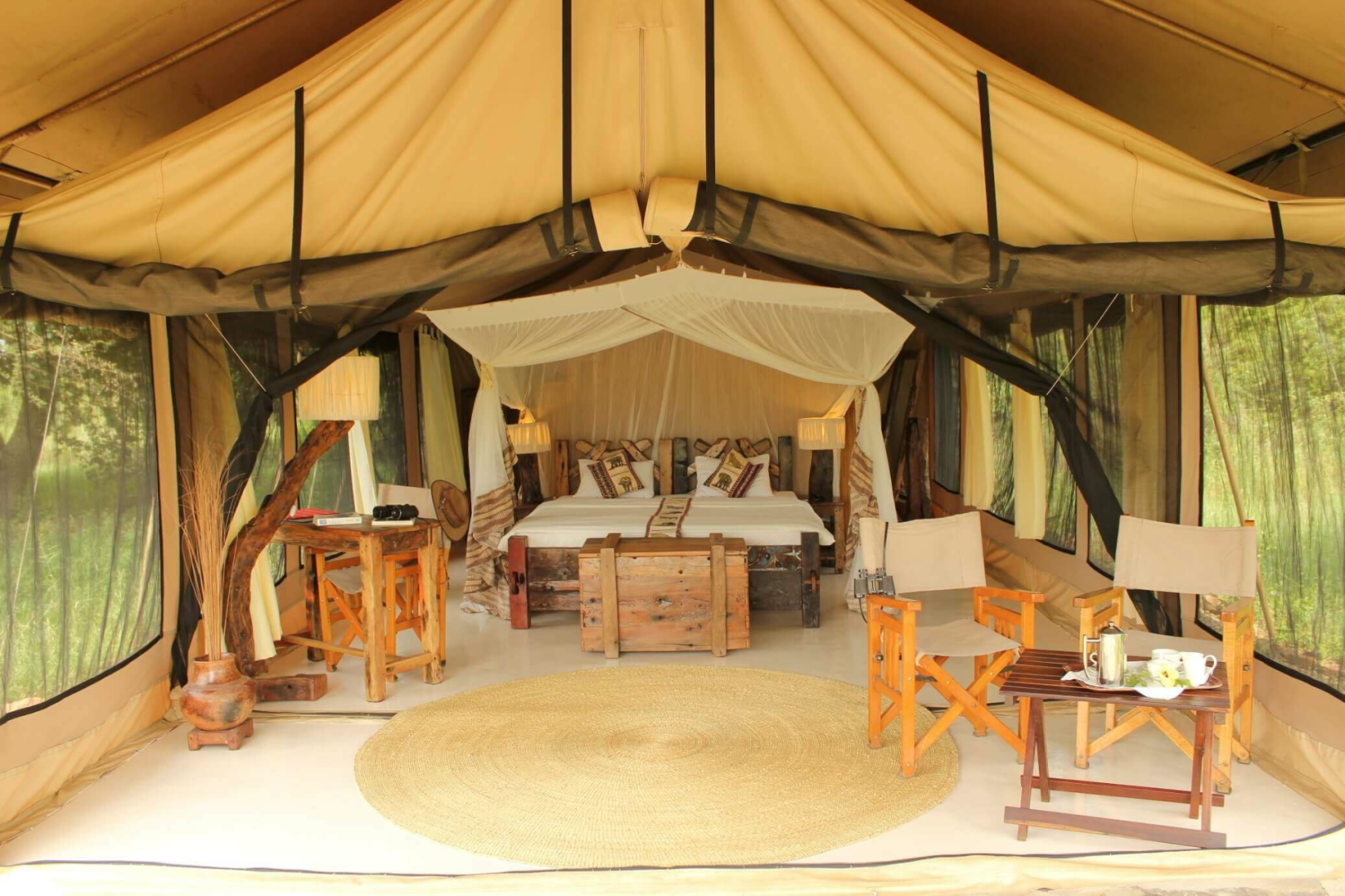Mit nur sieben, sehr komfortabel eingerichteten Zelten, sowie einem Speisezelt und der typischen Lagerfeuerstelle stellt Kirurumu eine sehr dezente Unterkunft für die gehobene Mittelklasse dar.