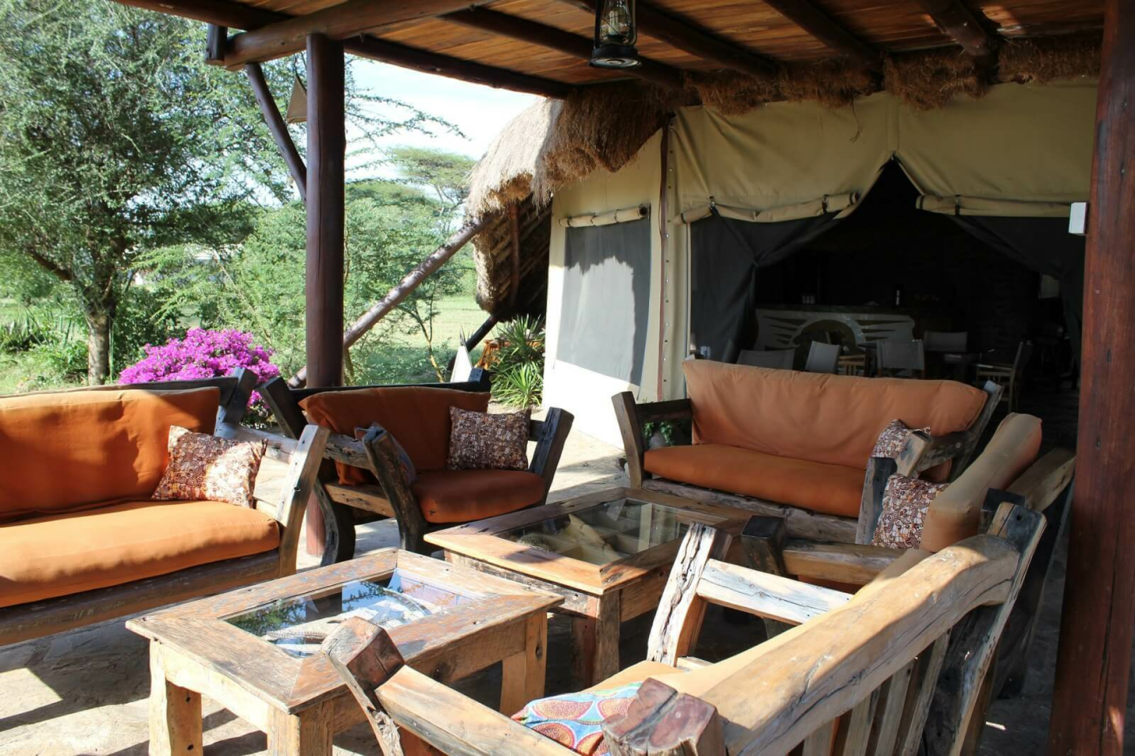 Die Lage des Camps ist nicht so wirklich optimal, es liegt etwas tiefer im Gelände, sodass man keinen guten Blick in die Ferne und auf die Umgebung hat. Die Zelte befinden sich auf Betonplattformen und sind ansprechend gestaltet. Es gibt ein Vorzelt mit einem kleinen Tisch und Stühlen sowie eine kleinere Veranda vor dem Zelt.