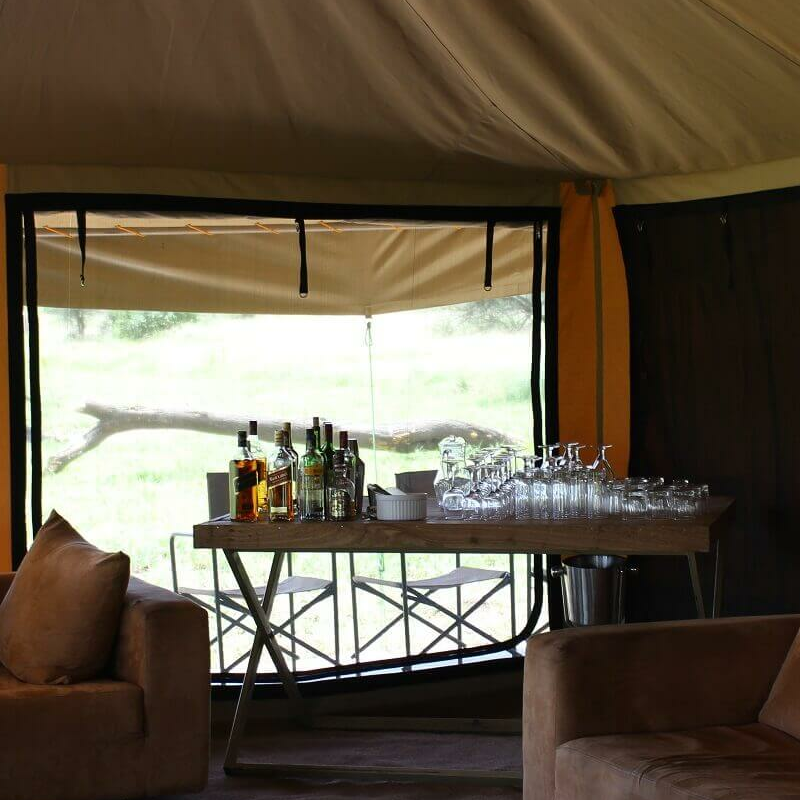 Mbugani bietet zwölf, hochwertige, sehr große Luxus-Zelte mit den klassischen Annehmlichkeiten eines typischen Safaricamps und noch ein paar zusätzlichen Extras (wie eine Sitzecke für das Frühstück.)