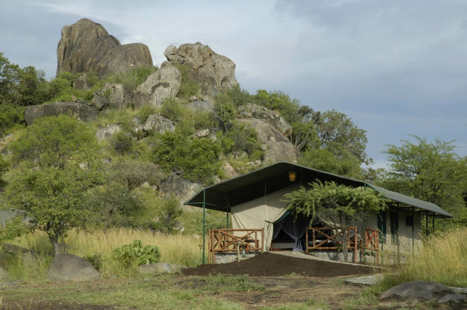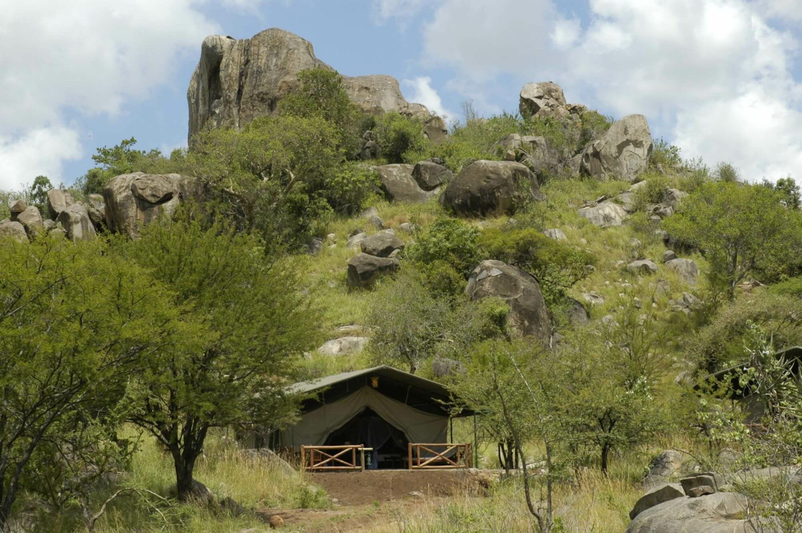 Das Mbuzi Mawe Tented Camp liegt ca. 20 Kilometer nördlich von Seronera und bietet 16 luxuriöse Zelte, die sich um die zentrale Lobby auf einem Millionen Jahre alten Granitfelsen verteilen.