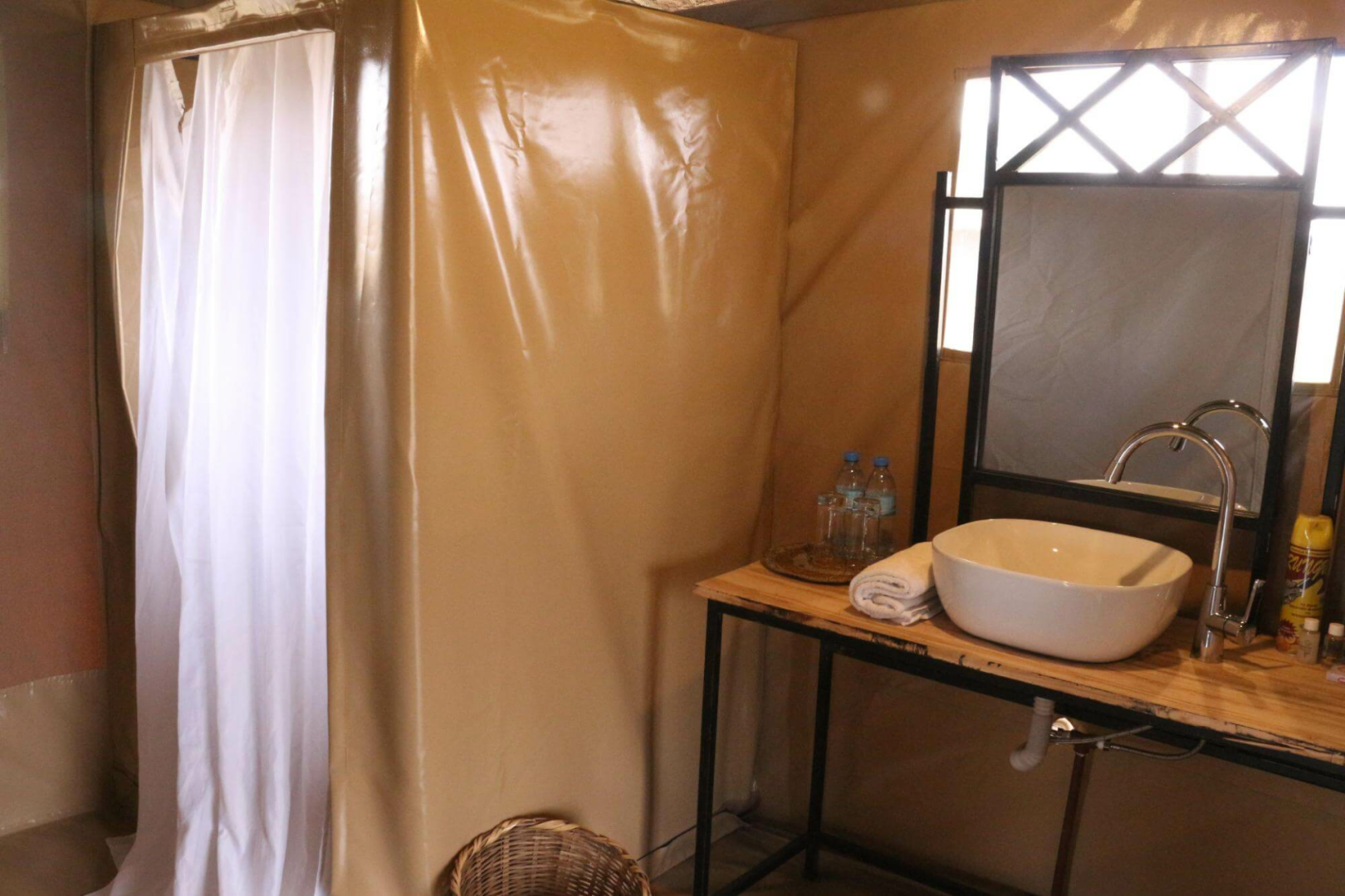 Duschen sind im westlichen Stil gehalten und das Wasser für die Dusche wird mit Solarenergie erhitzt. Es gibt vier neuere Zelte mit ähnlicher Ausstattung.