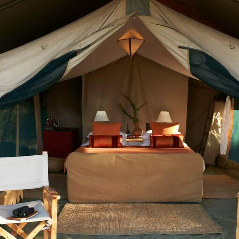 Mit nur sieben, sehr komfortabel eingerichteten Zelten, sowie einem Speisezelt und der typischen Lagerfeuerstelle stellt Kirurumu eine sehr dezente Unterkunft für die gehobene Mittelklasse dar.