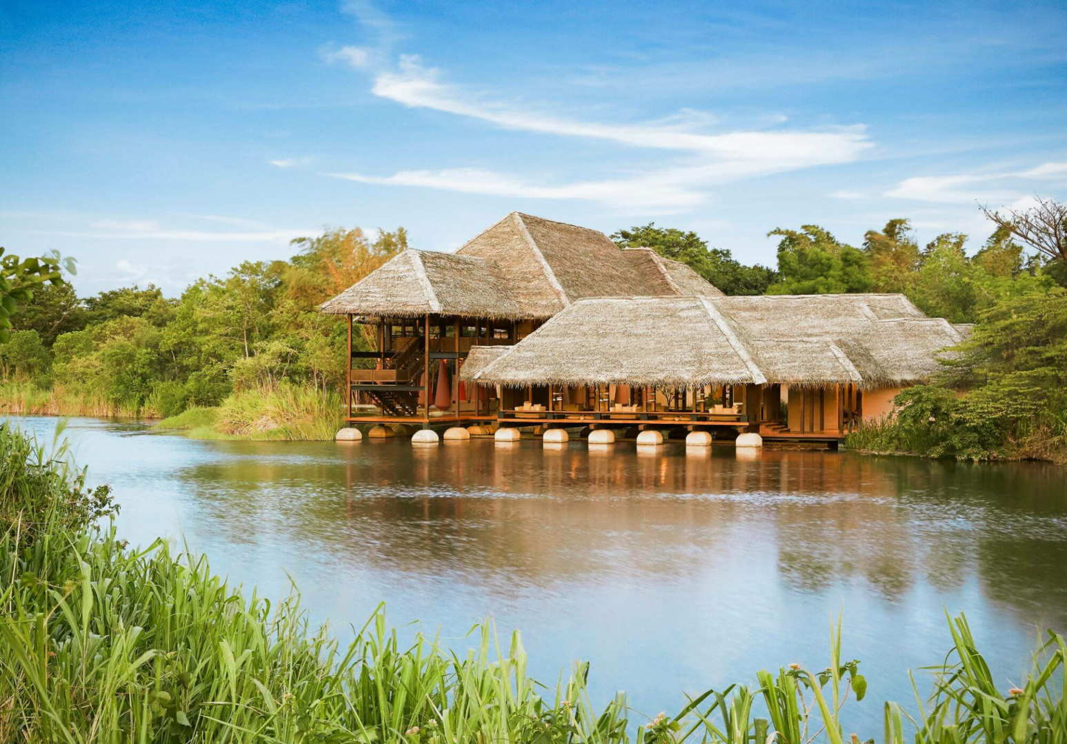 Das Resort ist im Stil der einheimischen Behausungen gebaut, die größtenteils auf Stelzen am Ufer eines Sees stehen, der von freundlichen Krokodilen bevölkert wird.