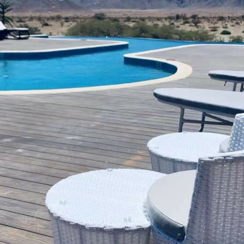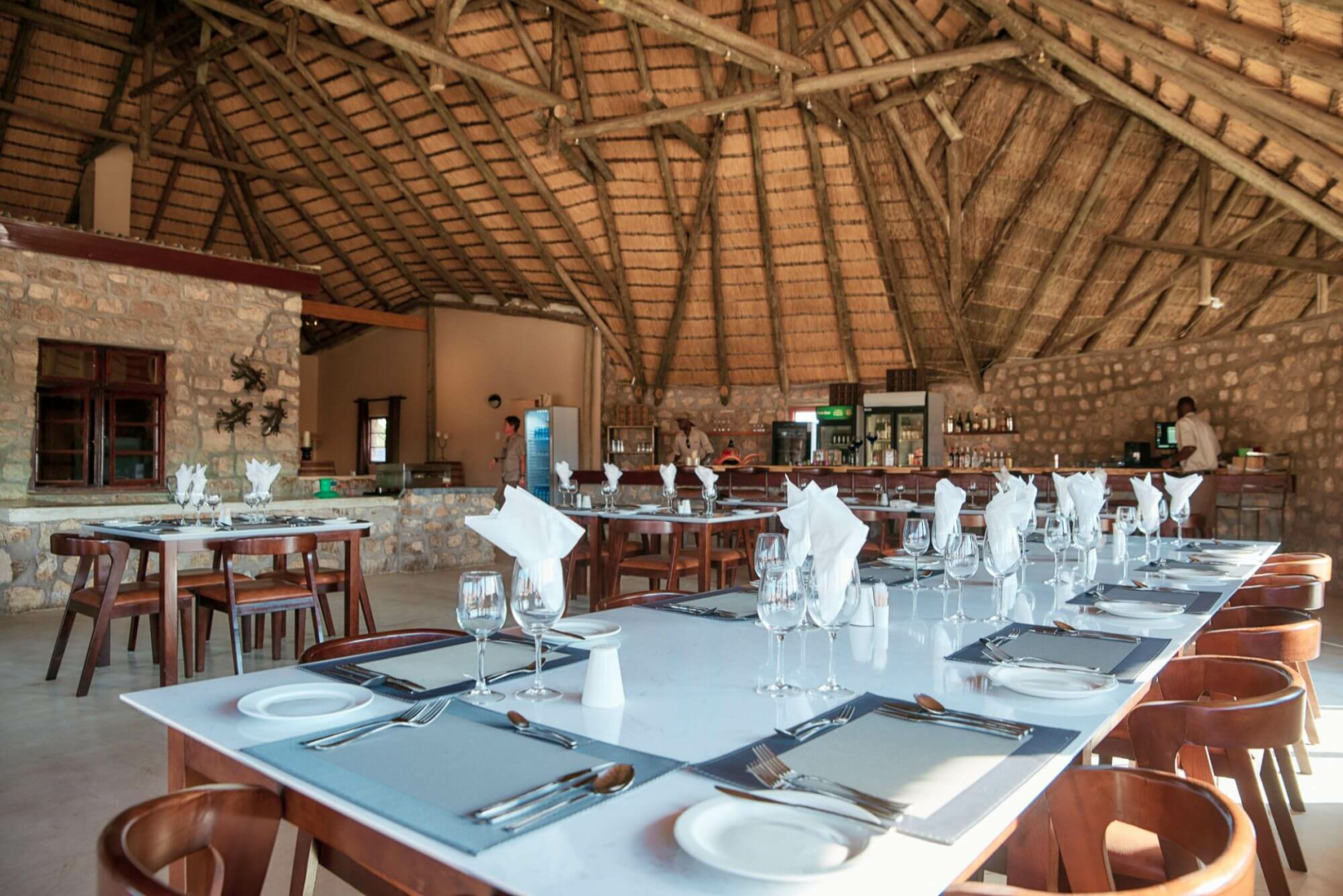 Kernstück der Lodge ist ein Haus unter Reetdach, wo die Mahlzeiten serviert werden. Es gibt auch einen kleinen Pool mit Sonnendeck und Liegemöglichkeiten.