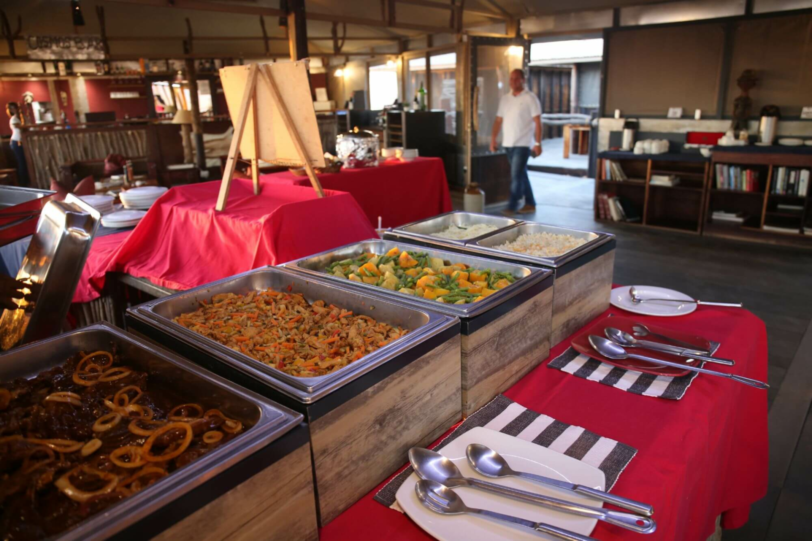 Kernstück der Lodge ist ein Haus unter Reetdach, wo die Mahlzeiten serviert werden. Es gibt auch einen kleinen Pool mit Sonnendeck und Liegemöglichkeiten.