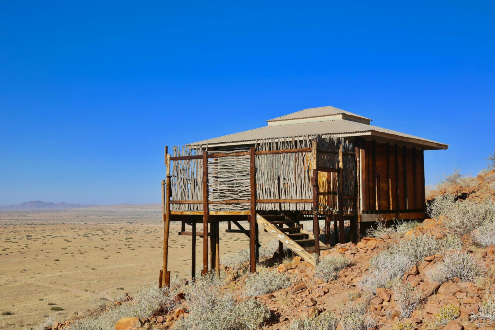 Die Hauptlodge wurde auf dem höchsten Punkt einer roten Düne mit umwerfende...