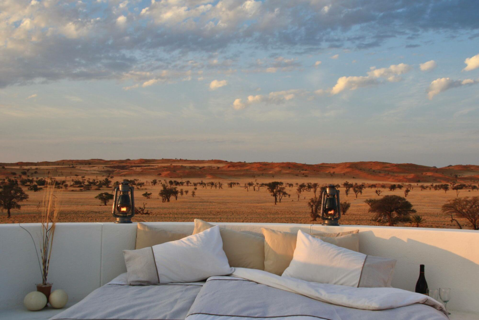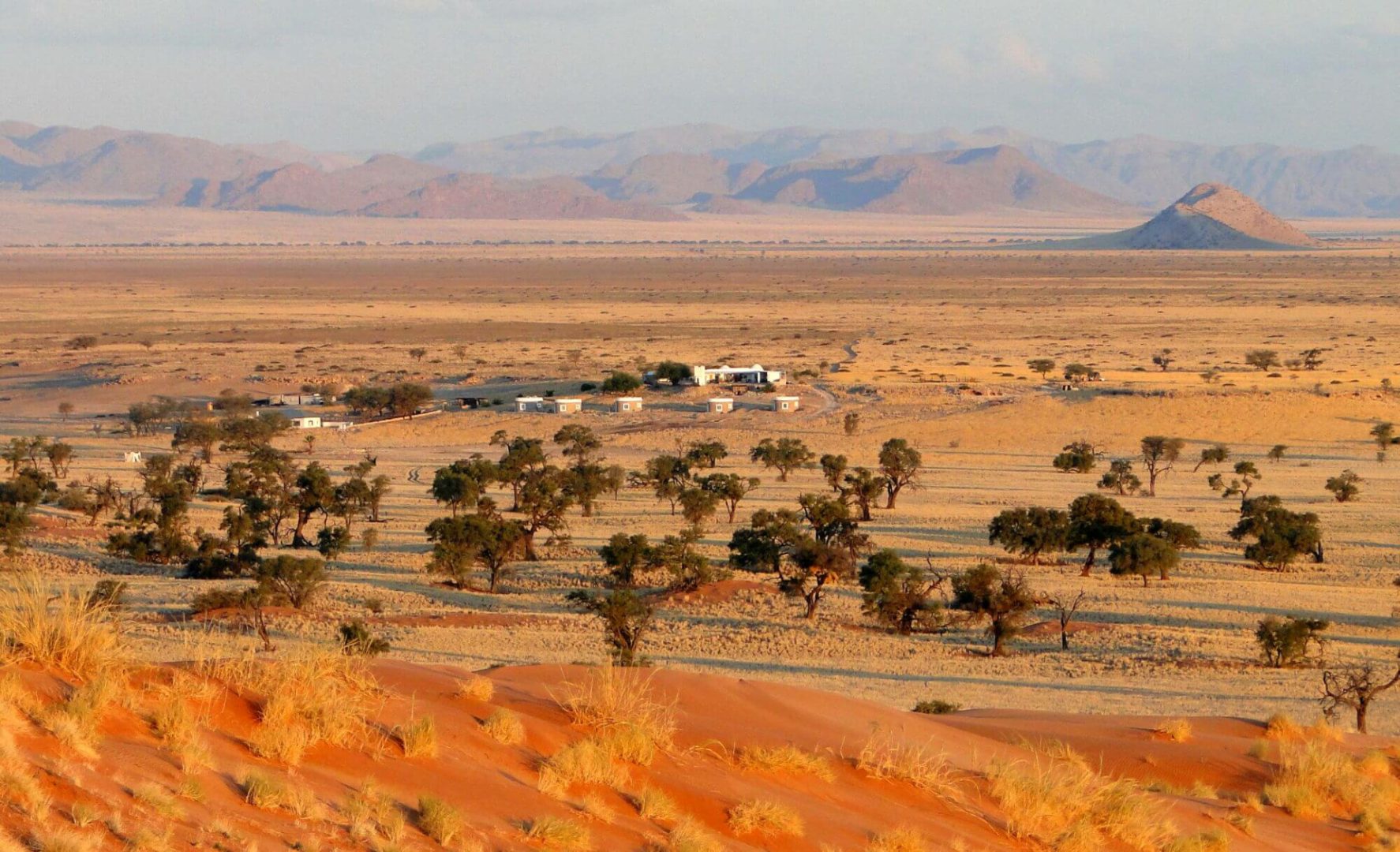 Das Namib Dune Star Camp liegt auf dem Kamm eines Bergrückens, 7 km westlich der C19 in der Nord-Namib im Südwesten Namibias. Es ist ein intimes, kleines Camp 50 km nördlich des Parkeingangs zum Sossusvlei.