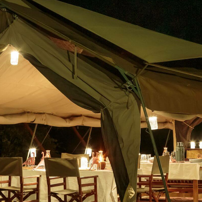 Nkonzi ist mit nur 4 Tents ein sehr kleines und intimes rustikales Tented Camp im sehr afrikanischen Stil unter der Leitung von Gavin Opie, einem der erfahrensten Guides in South Luangwa, der manchmal auch auf Pirsch mit den Gästen fährt und jeden Abend zusammen mit ihnen am Tisch sitzt. Sein Team aus höchst professionellen Guides ist ausgezeichnet, und das ist, worum es beim Nkonzi geht, um ein unprätentiöses Safaricamp, wo nur die fantastische Natur und nicht eine schicke Umgebung wichtig ist. Und Natur ist in Nkonzi reichlich vorhanden. Das Camp wurde in einer abgelegenen Lage im Herzen des Parks aufgebaut, dort wo keine andere Camps zu finden sind, dafür aber manche Löwenrudel vorbeiziehen. Genauso wenig trifft man auf andere Jeeps auf den hervorragend organisierten Pirschfahrten und Walks. Das Essen ist einfach aber lecker, die Zelte groß, mit zwei großen Betten und einem eigenen Outdoor-Bad mit Eimer-Dusche und WC.