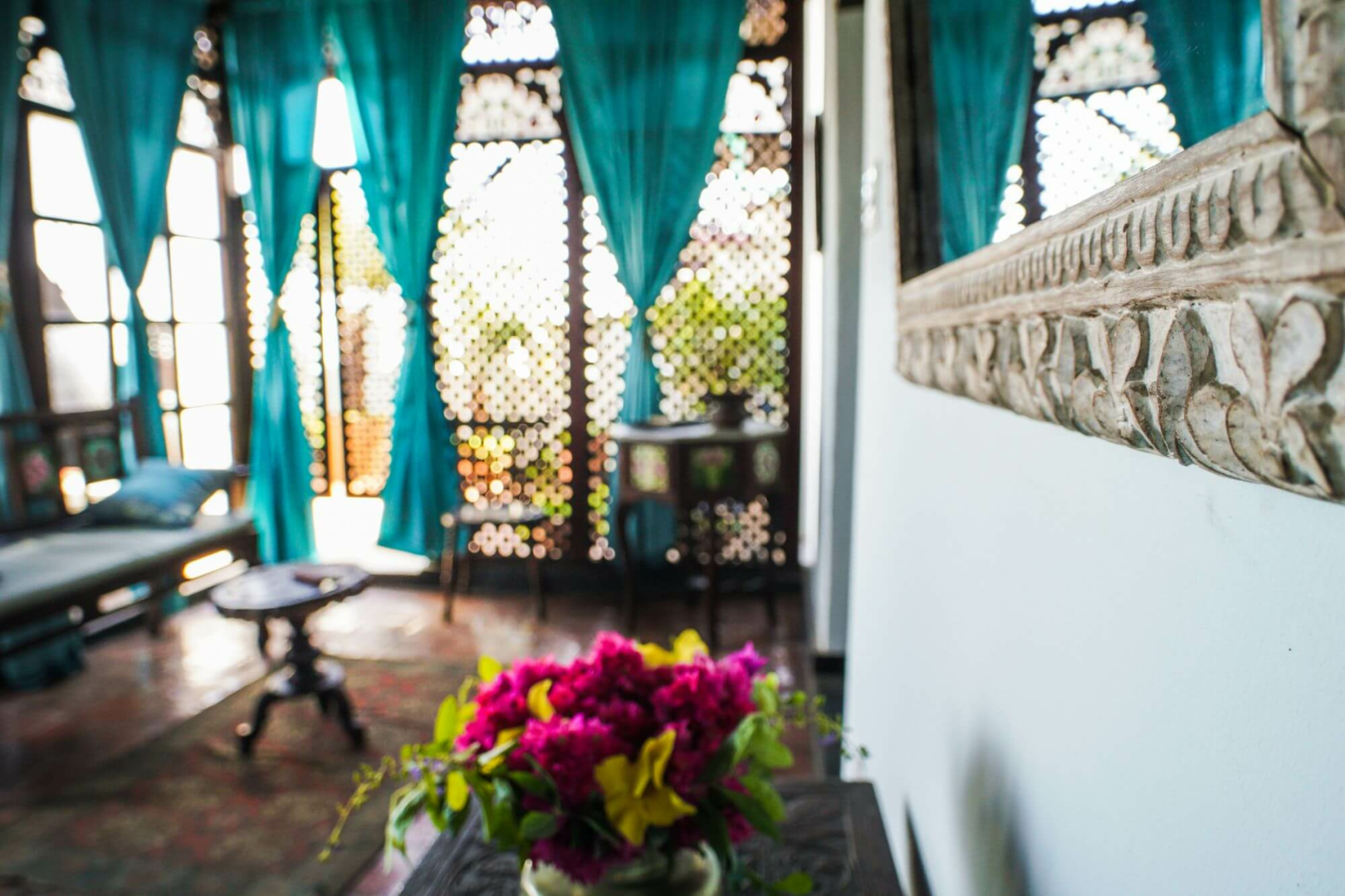 Die Betreiber des Emerson on Hurumzi haben Jahre damit verbracht, einem alten Palast aus dem 19. Jahrhundert mitten im Straßengewirr von Stone Towns Altstadt seine alte Pracht zurück zu geben. Wie sein Schwersterhotel Emerson Spice ist auch das Emerson on Hurumzi ein sehr schönes Boutique-Hotel mit echtem Sansibari-Stil und viel Charakter. Und wie auch das Emerson Spice ist das Emerson auf Hurumzi äußerst geschmackvoll mit vielen antiken sansibarischen Möbeln, Kronleuchter, und Teppichen dekoriert, viele davon Originalstücke aus der eigenen Palastsammlung. Eine steile Holztreppe führt zu den oberen Stockwerken, wo sich weitere Sitzbereiche und hübsch bepflanzte kleine Innenhöfe befinden. Die siebzehn Zimmer von Emerson on Hurumzi sind auf den vier Stockwerken des Anwesens verteilt, allesamt sehr individuell gestaltet, jedes ist wunderschön mit kräftigen Farben, prächtigen Stoffen und antiken Möbeln dekoriert.