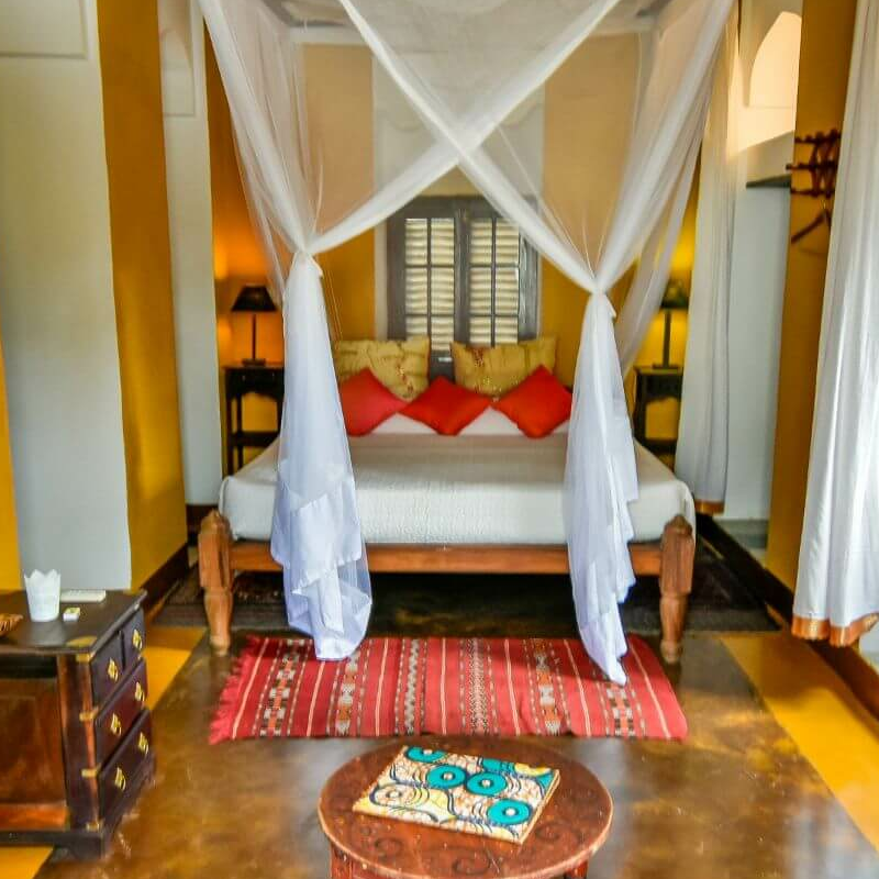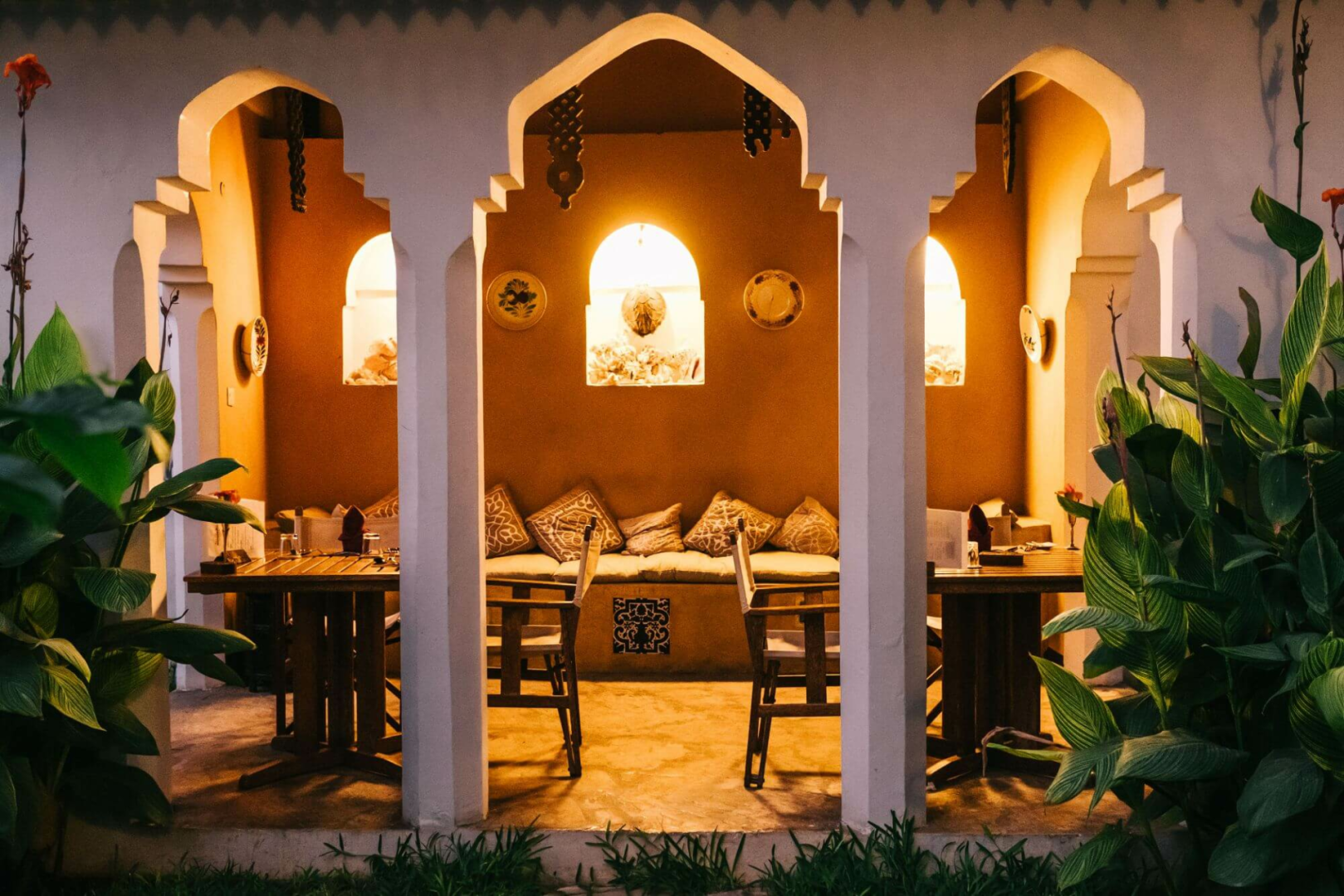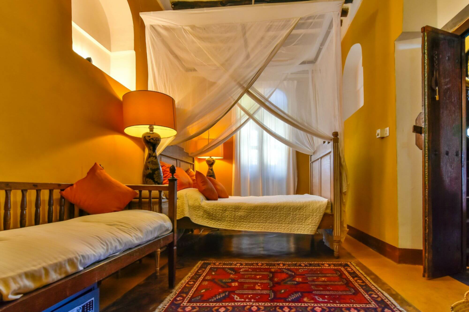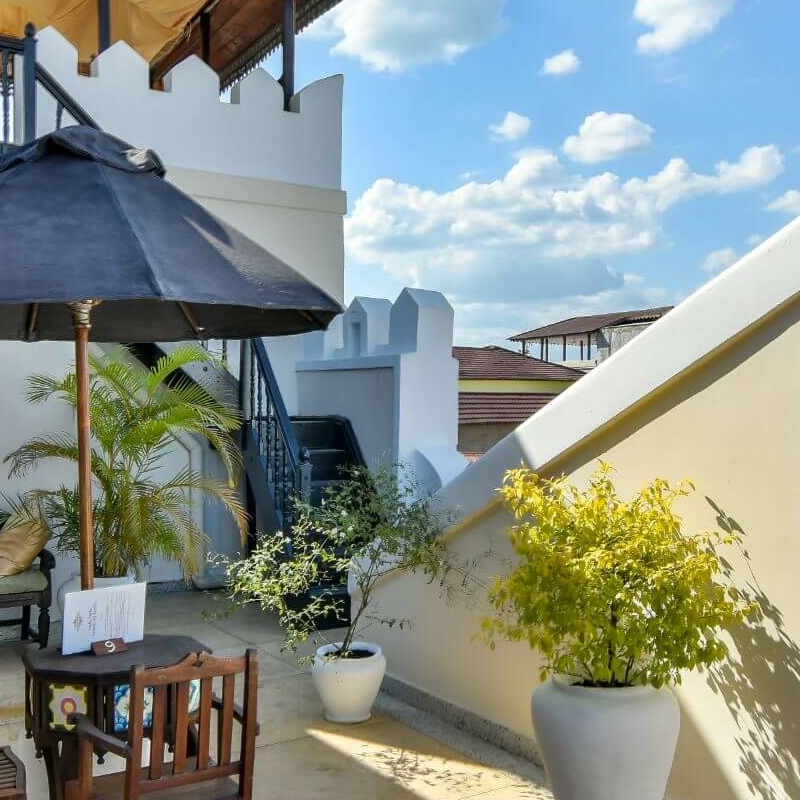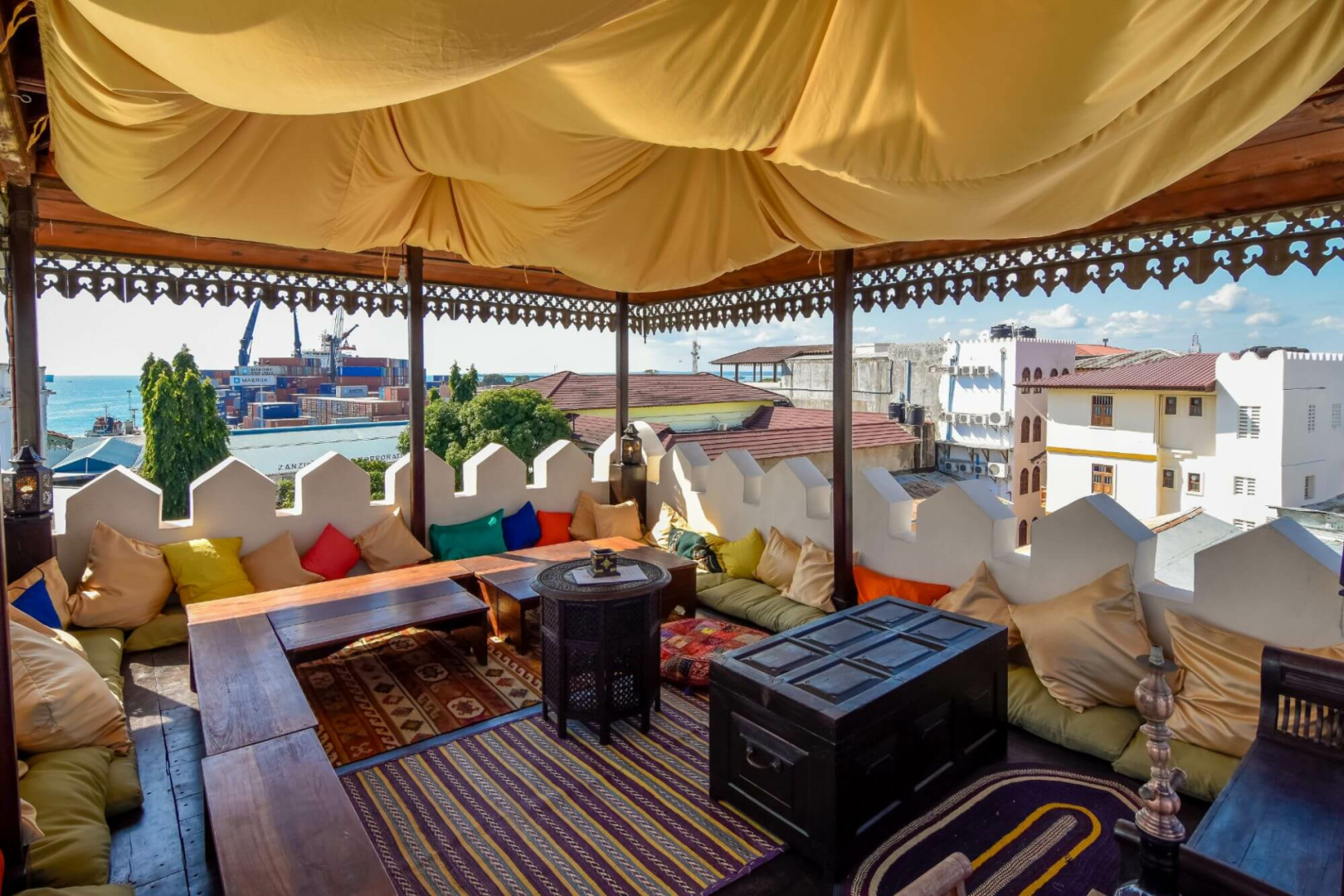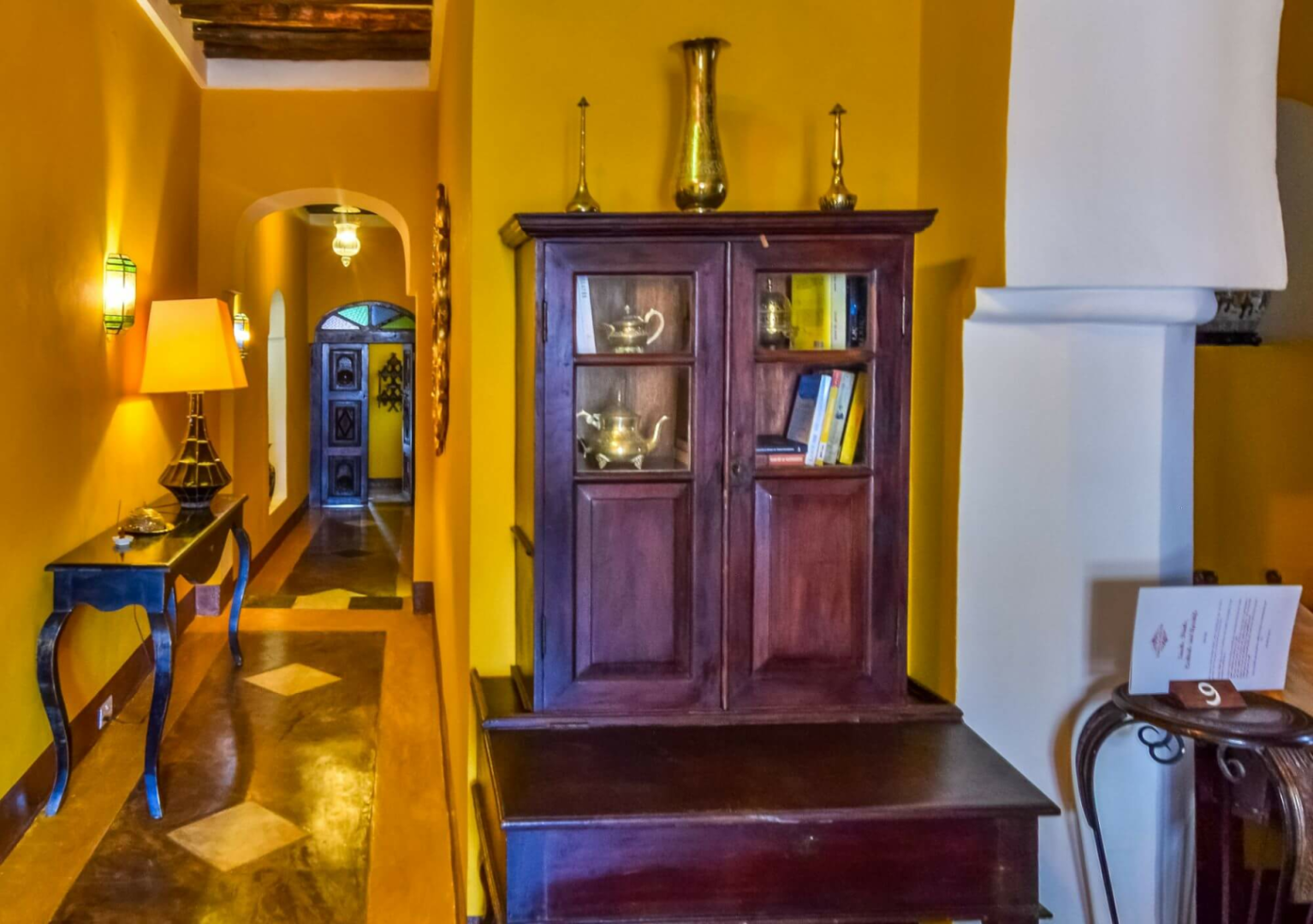 Mitten im Herzen von Stone Town wurde dieses kleine Boutique-Hotel im alten Palast der Prinzessin Kholle, Tochter des ersten Sultans von Sansibar, benannt, die das Palast 1860 zur Aufbewahrung ihrer wertvollen Schatzsammlung bauen ließ. Das Palast wurde unter Verwendung traditioneller Materialien sehr geschmackvoll restauriert, und blendet das zeitgenössiße Kunstwerk lokaler sansibarischen Künstler und die antiken Möbel aus der alten Sammlung wundervoll ein. Die Innenräume sind in warmen Ockerfarben gestrichen, was dem Anwesen einen läßigen leicht schwäbigen Look verleiht. Uralte Massivtore öffnen sich zum Restaurant und Loungebereich mit hohen Decken und alten Oriental-Teppichen. Balkontüren führen zu einem grünen Innenhof mit einem kleinen Pavilion und einem kleinen Pool.