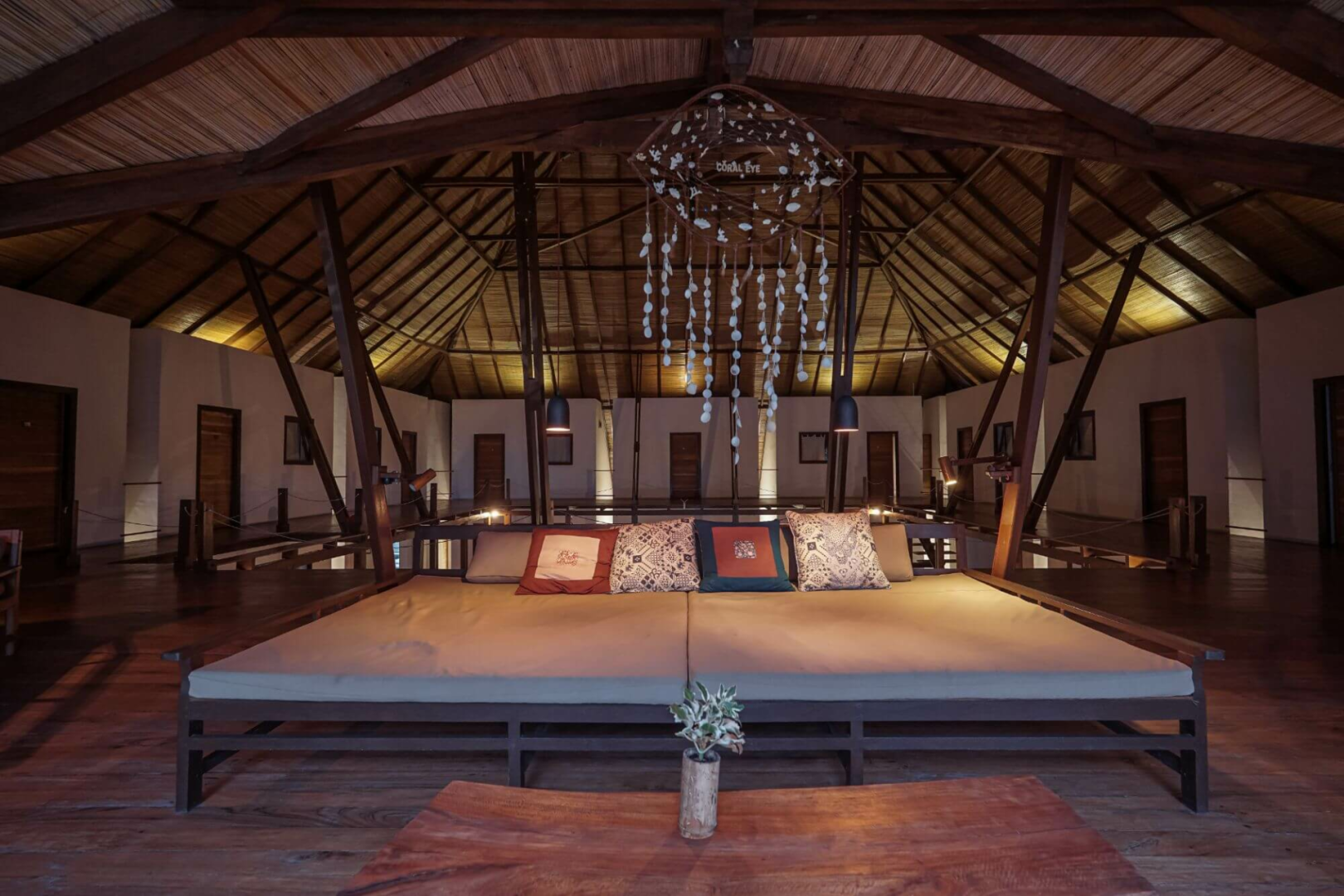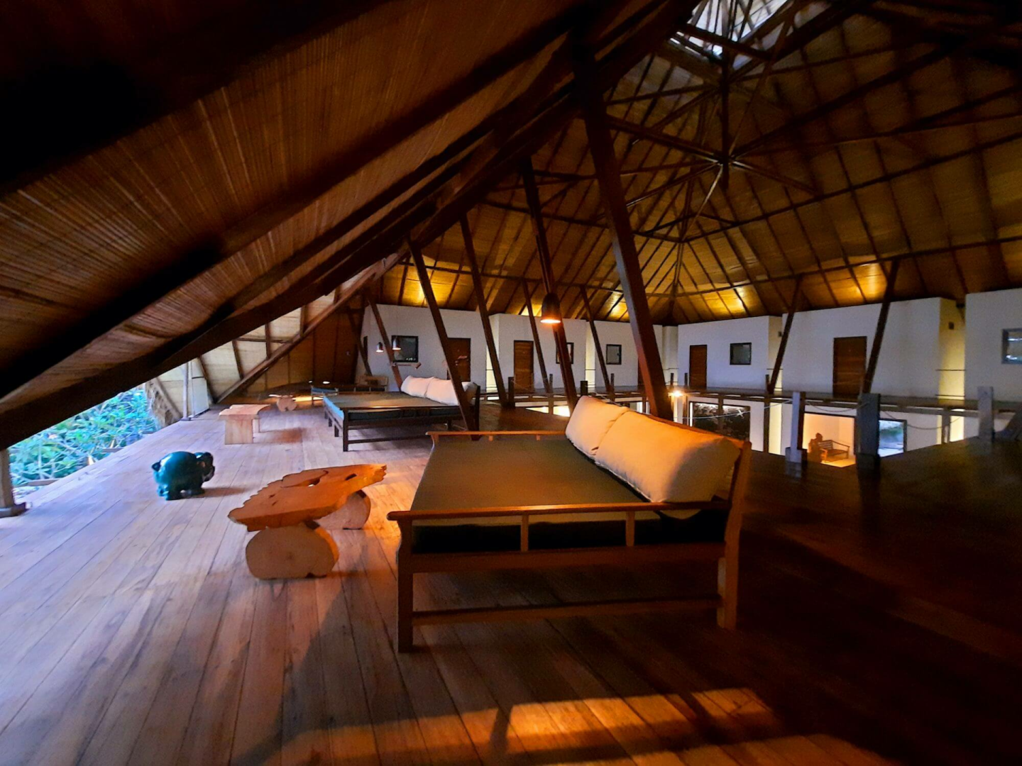 Das kleine und charmante Coral Eye Resort befindet sich auf der Insel Bangka nördlich von Manado in Nordsulawesi. Die Lodge liegt an einem idyllischen, menschenleeren, kilometerlangen weißen Sandstrand. Unter der hartnäckigen und inspirierenden Leitung seiner sympathischen Besitzer, dem Italiener Gabriele und der Belgierin Carolin, überrascht Coral Eye den Gast mit einem zentralen Gebäude, das ganz aus Holz besteht und in einem Stil errichtet wurde, den man als moderne Stammesarchitektur bezeichnen könnte. Hier sind Essbereich, die Lounge und die Terrasse untergebracht.