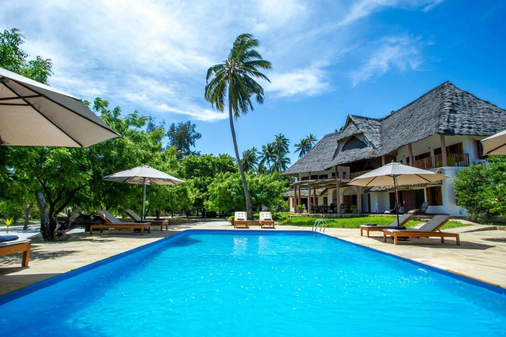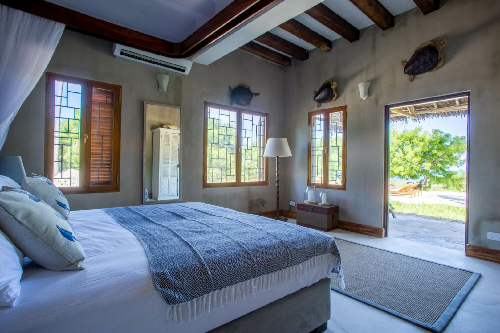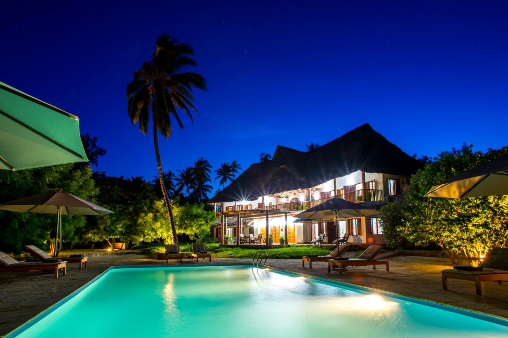 Am meisten gefällt uns die spektakuläre Lage an einem fabelhaften, abgelegenen Küstenabschnitt des Pangani-Strandes. Vor der kleinen Lodge erstreckt sich ein traumhaft schöner puderweißer Strand, hinter der Lodge sind Palmen und Wald wohin das Auge reicht. Die Villa an sich ist ein großes zweistöckiges Haus unter Reetdach mit einem Pool, einen Garten und einer überdachten Terrasse für Mahlzeiten draußen. Drin hat man einen sehr komfortablen in warmen Tönen eingerichteten Wohnzimmerbereich mit Polstersofas und einer eleganten Dekoration. Gäste werden in sechs sehr schönen Zimmern auf dem Oberstock untergebracht.