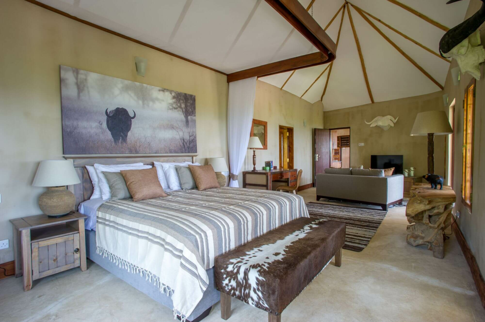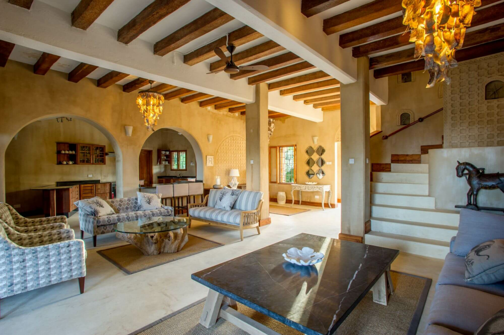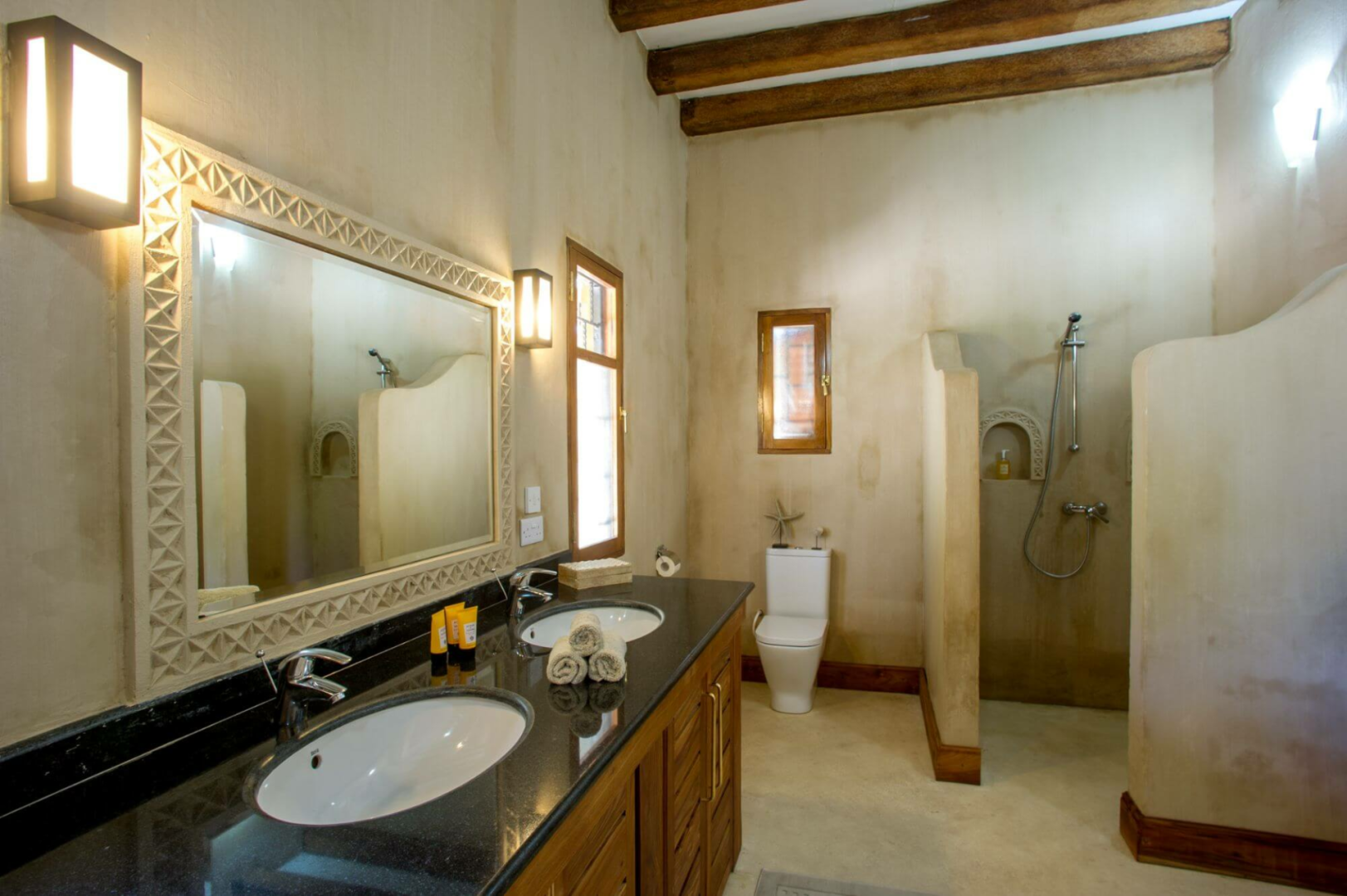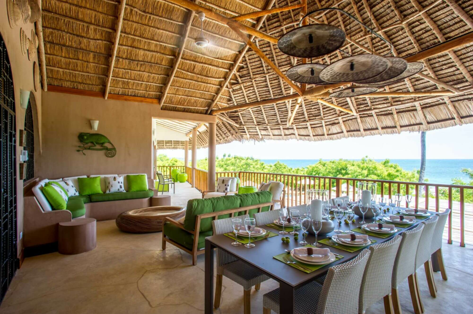 Am meisten gefällt uns die spektakuläre Lage an einem fabelhaften, abgelegenen Küstenabschnitt des Pangani-Strandes. Vor der kleinen Lodge erstreckt sich ein traumhaft schöner puderweißer Strand, hinter der Lodge sind Palmen und Wald wohin das Auge reicht. Die Villa an sich ist ein großes zweistöckiges Haus unter Reetdach mit einem Pool, einen Garten und einer überdachten Terrasse für Mahlzeiten draußen. Drin hat man einen sehr komfortablen in warmen Tönen eingerichteten Wohnzimmerbereich mit Polstersofas und einer eleganten Dekoration. Gäste werden in sechs sehr schönen Zimmern auf dem Oberstock untergebracht.