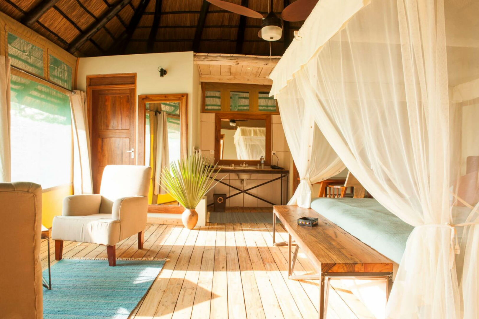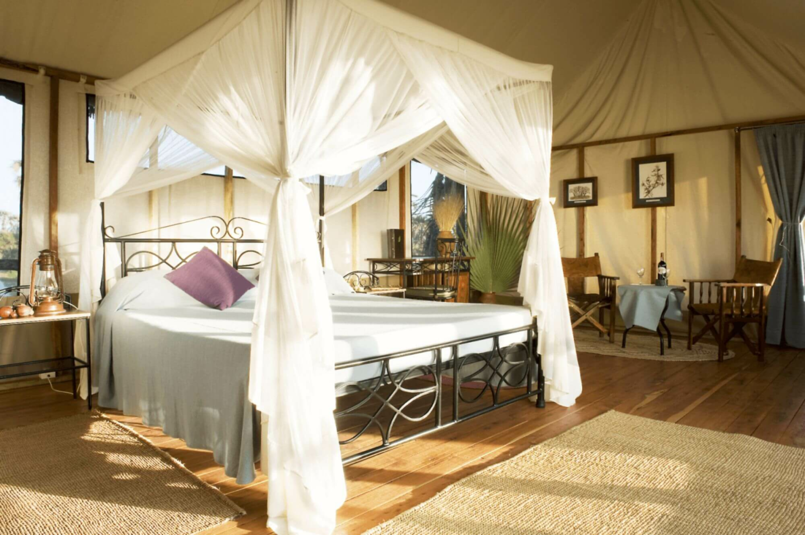 Alle Zeltsuiten sind sehr groß und verfügen über eine komfortable Einrichtung, die mit den Annehmlichkeiten eines Hotels vergleichbar ist. Ventilator, Fön und Safe gehören hier zur Grundausstattung. Von der Terrasse bietet sich eine tolle Aussicht auf den Lake Manyara,