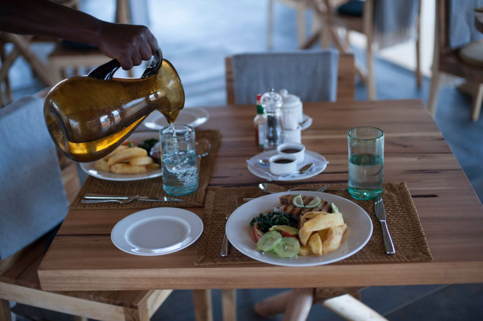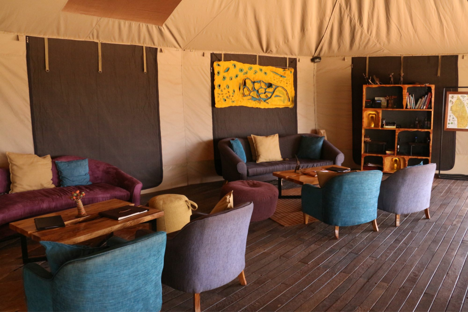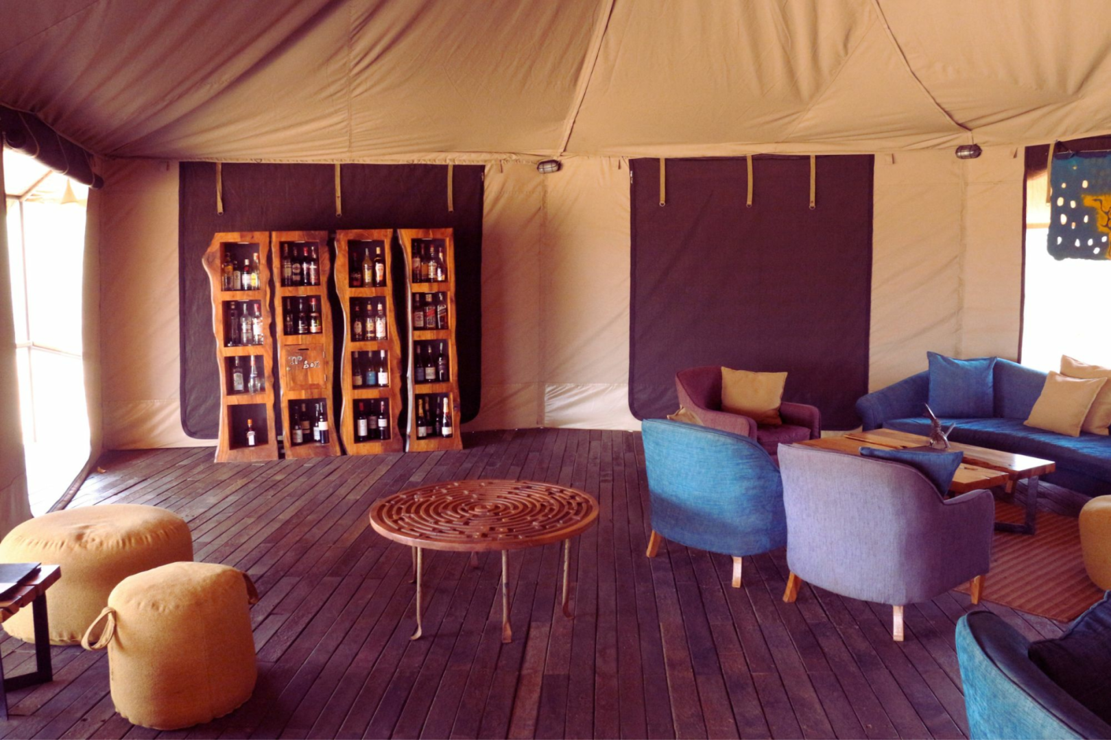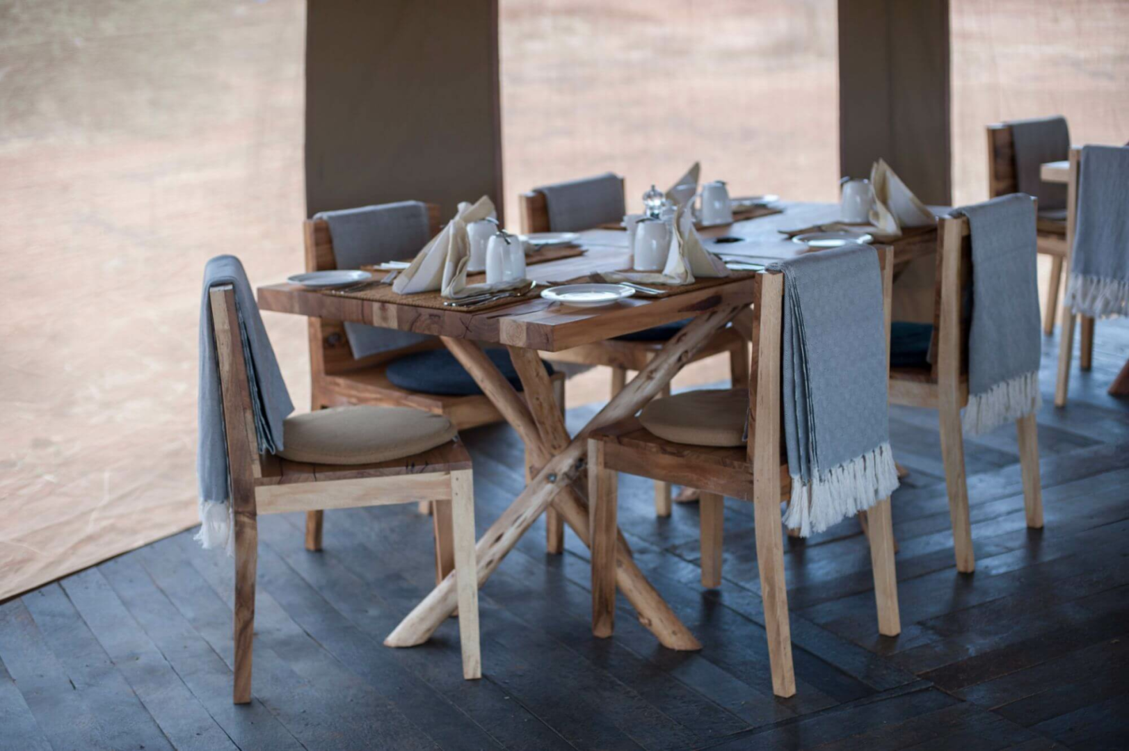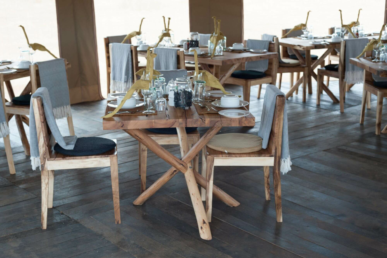 Für uns ist Nyikani wohl eines der besten Adressen im Park. Seine herrliche, dominante Hügellage, die zwei gut ausgestatteten Messezelte mit eleganter, aber nicht übertriebener Inneneinrichtung (links der Loungebereich mit vielen Sitzgelegenheiten, Sofas und einer gut bestückten Bar, rechts der luftige, offene Essbereich): Nyikani wird euch einfach nicht enttäuschen. Das Essen ist gut, aber nicht auf Gourmet-Niveau, aber auf jeden Fall ausreichend. Unterhalb der Essenszelte befindet sich die obligatorische Feuerstelle.