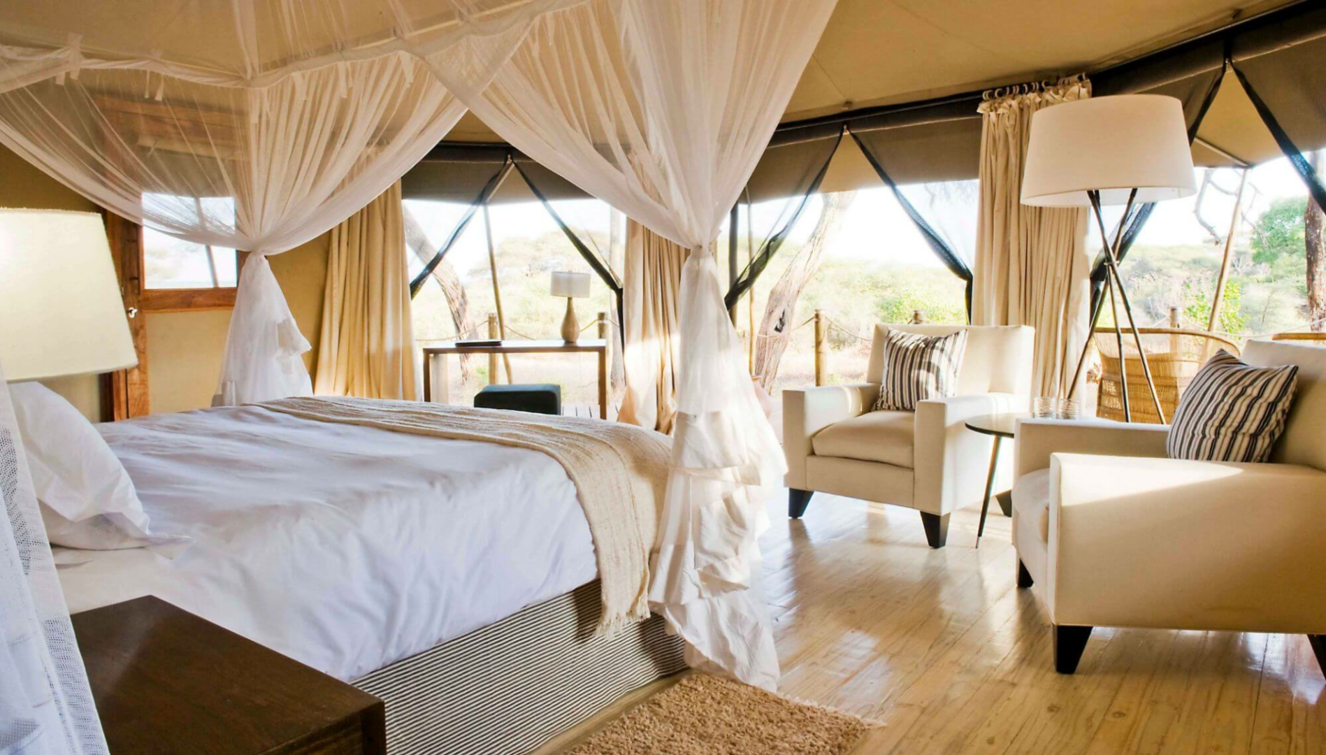 Kuro Tarangire ist ein saisonelles luxuriöses Tented Camp der Nomad-Gruppe, das eine ruhige Lage inmitten eines Akazia-Waldes am Ufer des Tarangire-Flusses im zentralen Bereich des Nationalaparks in der Saison von Juni bis November einnimmt.