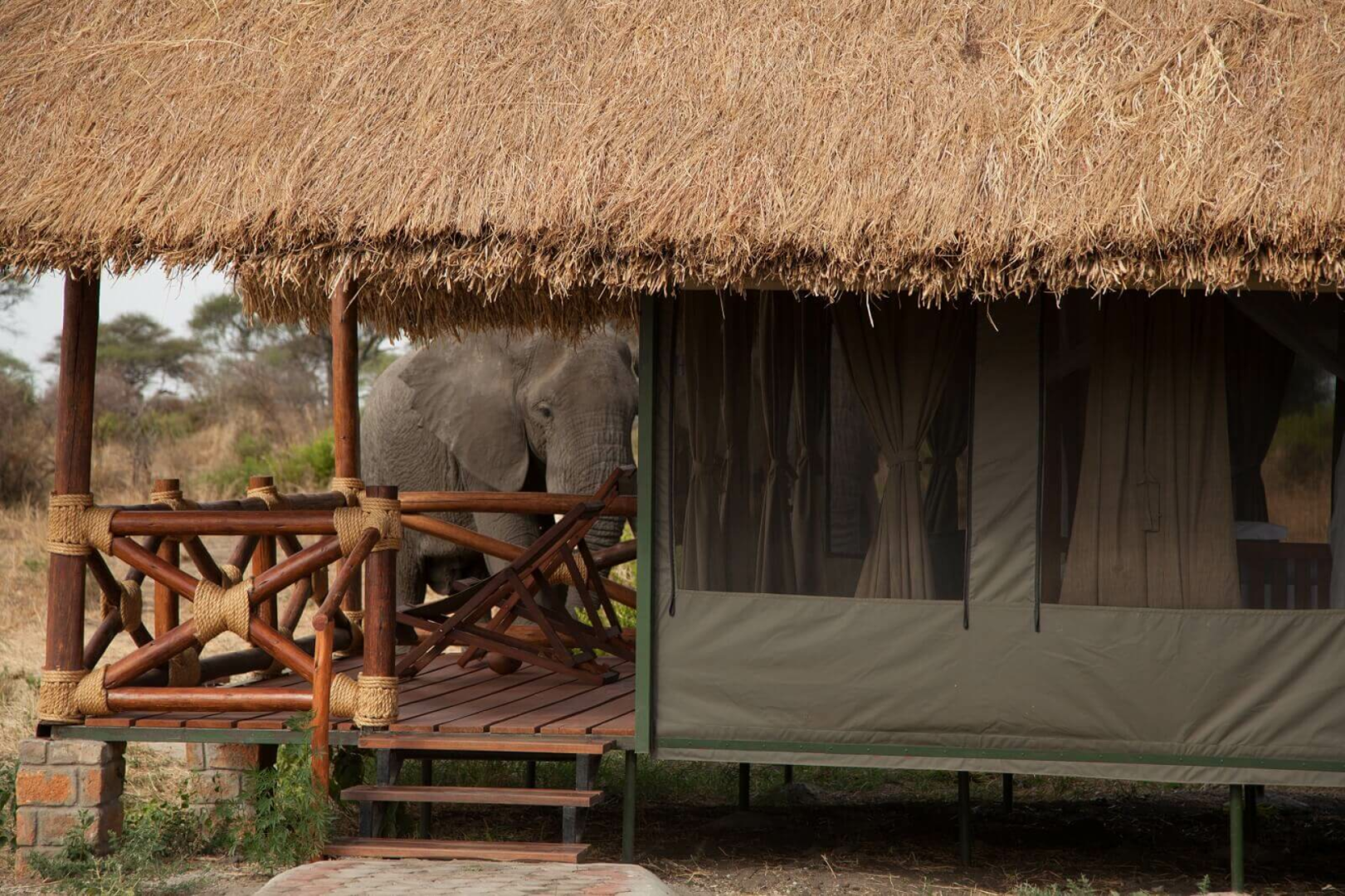 Kuro Tarangire ist ein saisonelles luxuriöses Tented Camp der Nomad-Gruppe, das eine ruhige Lage inmitten eines Akazia-Waldes am Ufer des Tarangire-Flusses im zentralen Bereich des Nationalaparks in der Saison von Juni bis November einnimmt.