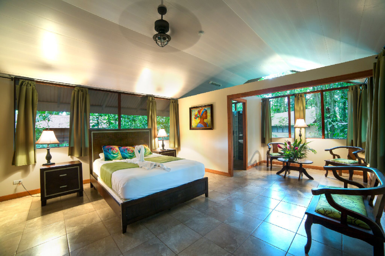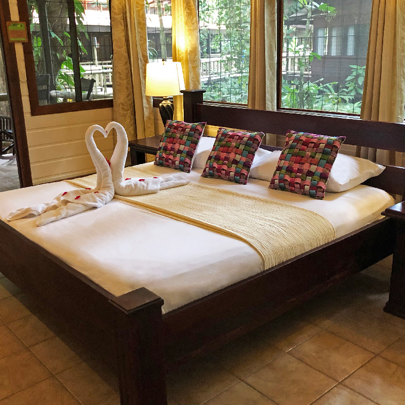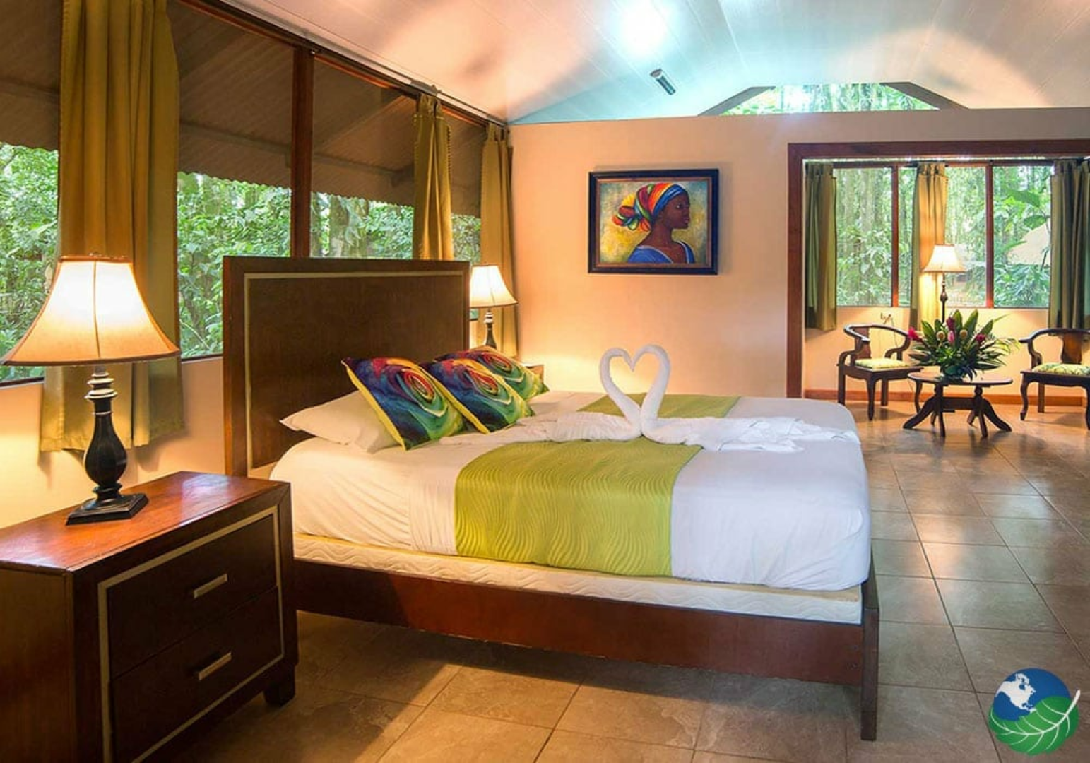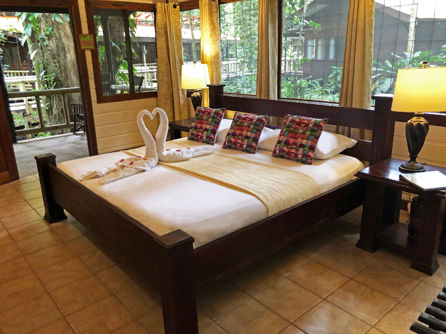 Die Evergreen Lodge liegt nur 8 Minuten vom Tortuguero-Nationalpark entfernt und befindet sich im Herzen des tropischen Regenwaldes. Die 65 Bungalows sind aus tiefrotem Mandel- oder Gipsholz gebaut. Die Zimmer sind einfach, aber sauber und verfügen über ein Doppelbett, ein eigenes Bad mit fließend warmem Wasser und Deckenventilatoren. Außerdem gibt es zwei erfrischende Swimmingpools, die sich perfekt für ein frühmorgendliches Bad vor der Erkundungstour oder zum Entspannen am Ende eines langen Sightseeing-Tages eignet. Einer der Pools hat sogar einen eigenen Wasserfall! Das Wasserfallbecken wird häufig von den drei verschiedenen Affenarten besucht, die im Park leben. Evergreen ist eine der besseren Unterkunftsoptionen Tortugueros. Wir hätten uns gewünscht, dass die Lodge kleiner wäre und auf die Instandhaltung besser geachtet werden – aber die hier arbeitenden Guides sind womöglich die besten im Park. Wegen ihnen sind wir bereit, den sauren Apfel zu beißen.