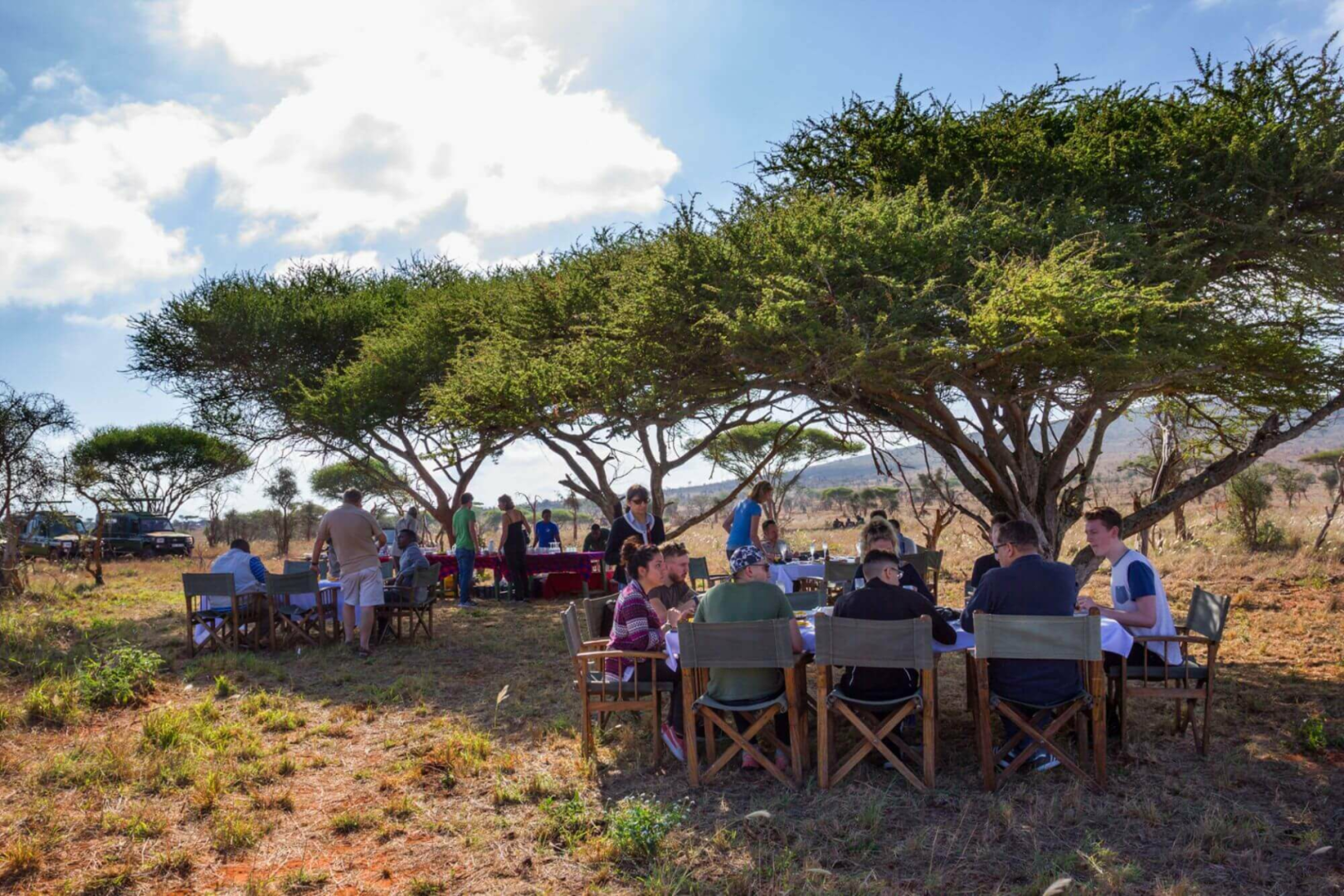Wenn man sich von dem überwältigenden Blick erholt hat, dann locken Pirschfahrten im privaten 500 km² großen Lumo-Schutzgebiet, eine Zusammensetzung aus drei Farmen. Das Gebiet ist insbesondere sehr reich an Büffeln (bis zu 1.000 soll es hier geben) und Elefanten. Raubkatzen werden sehr selten gesichtet. Nachtpirschfahrten sind auch möglich und ein großer Vorteil, gegenüber von Tsavo West, wo sie nicht gestattet sind. Buschwalks werden ebenfalls angeboten.