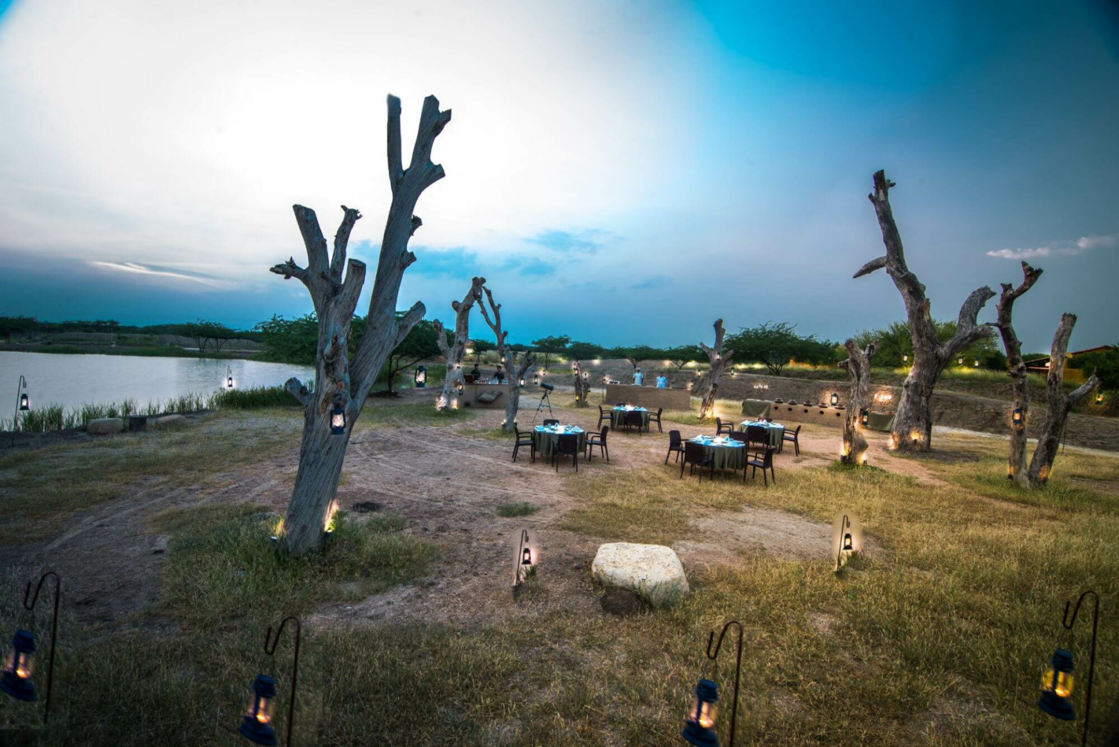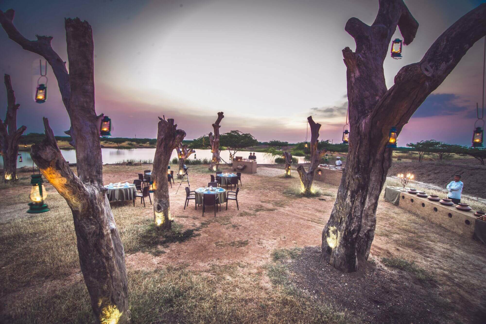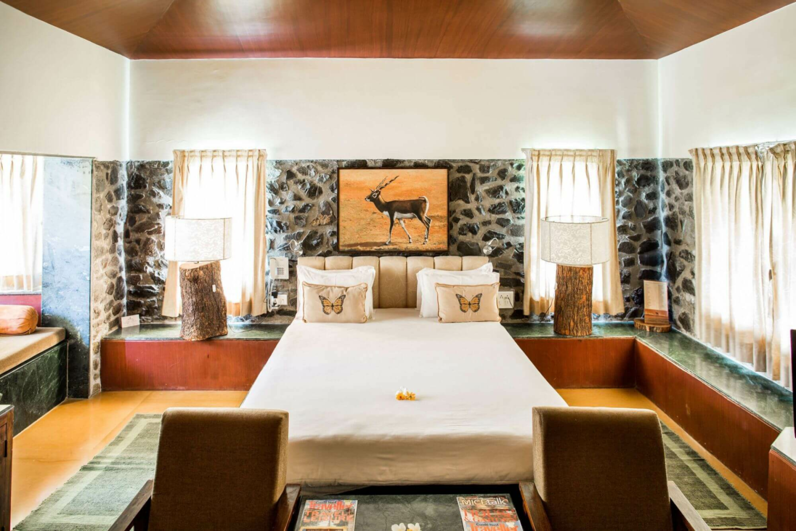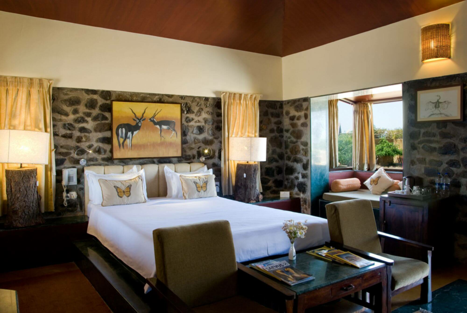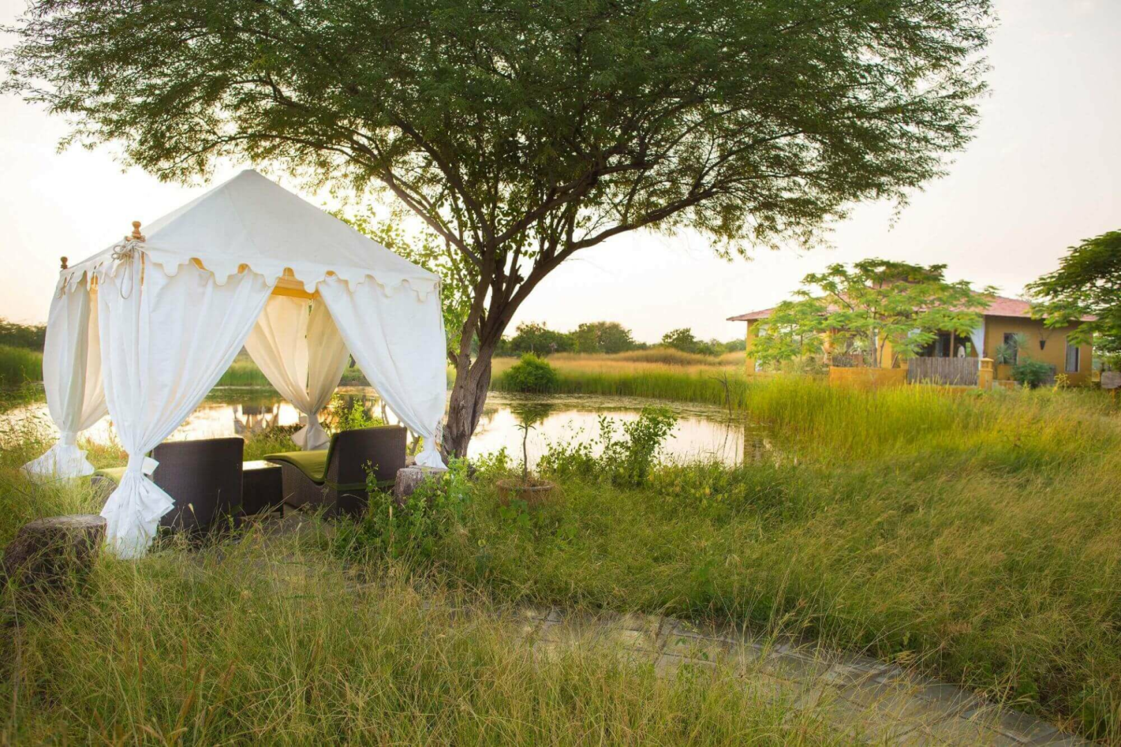 Wer hätte dies erwartet? Ein Hauch von Luxus mitten in der desolaten Wüstenlandschaft von Gujarat. Die stilvolle Blackbuck Lodge liegt am Rande des Velavadar-Nationalparks auf einem mehrere Hektar großen Gelände, das wie eine grüne Oase inmitten der kargen Landschaft eingebettet ist und zahlreiche wilde Tiere anlockt: So ist es nicht selten, dass man einen Nilgai oder eine Hirschziegenantilope, wofür der Nationalpark bekannt ist, direkt vor der Haustür trifft.