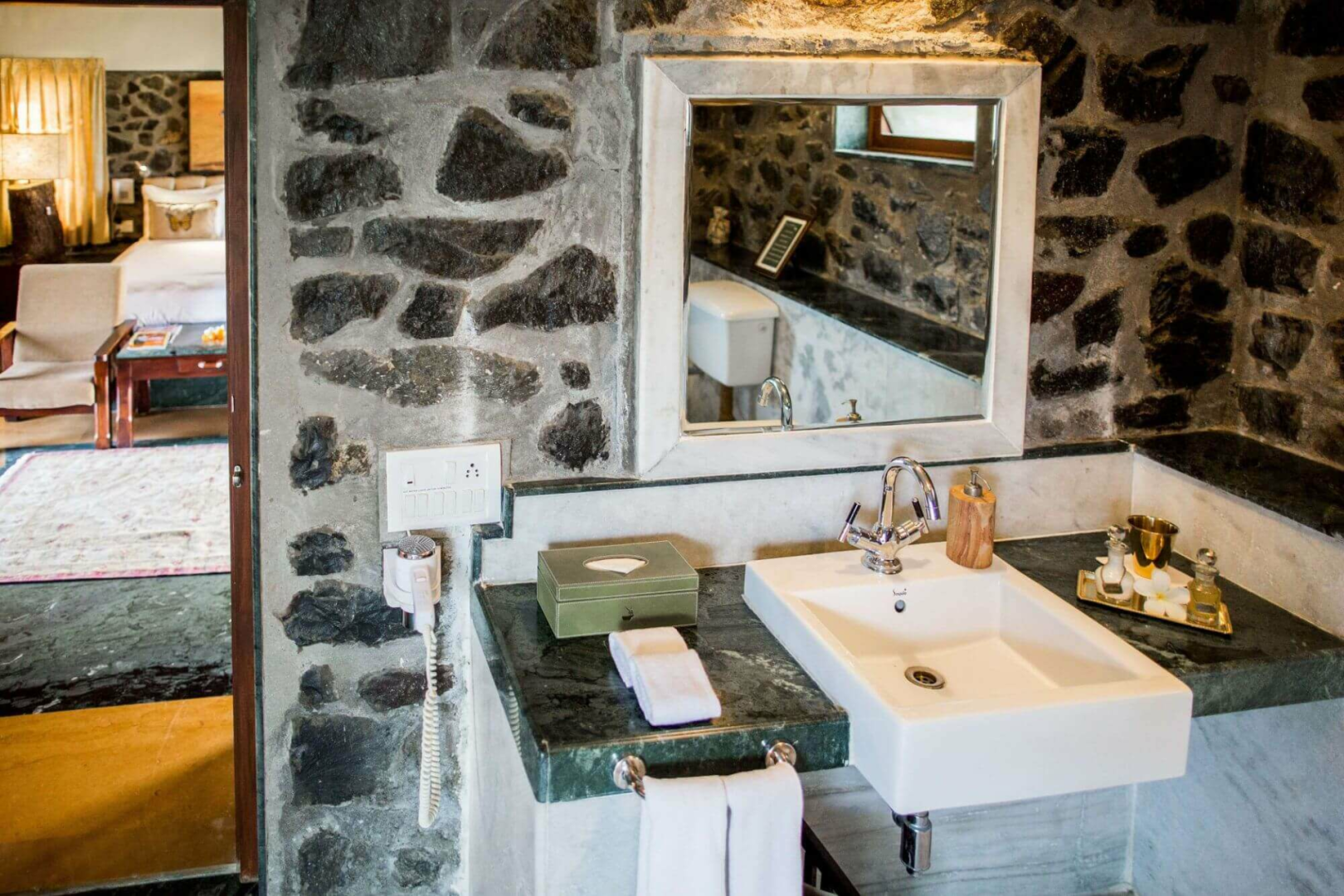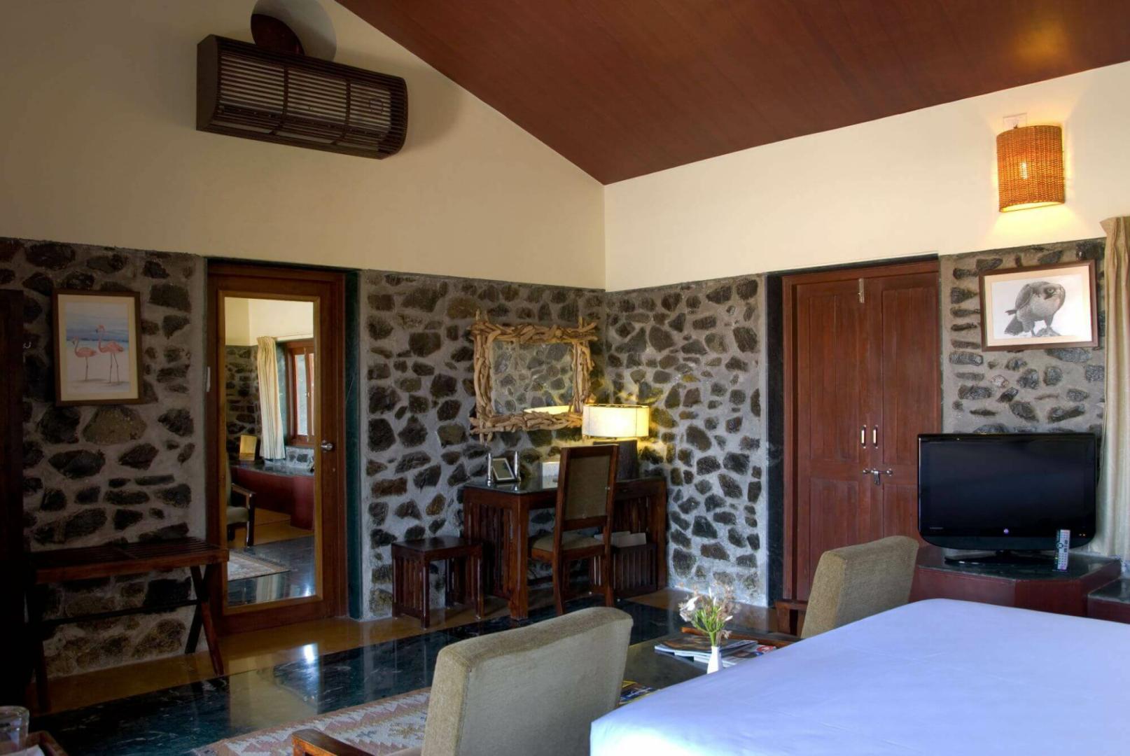Die Lodge besticht mit luxuriösen Cottages mit einem herrlichen Bett und sowohl innen- als Außendusche, aufgereiht an einem Seeufer. Die gemeinsamen Räume sind simpel und erinnern etwas an eine afrikanische Lodge. Jedes der 14 Cottages ist elegant eingerichtet mit Terrasse, sowie Innen- und Außenbadezimmer. Die Inneneinrichtung ist rustikal und zeitgenössisch zugleich mit Möbel aus Massivholz, Granitböden, grob behauene Steinwände, Truhen und eine wundervolle Liegenische unterhalb des Fensters, die mit Matratzen und Nackenrollen ausgelegt ist.