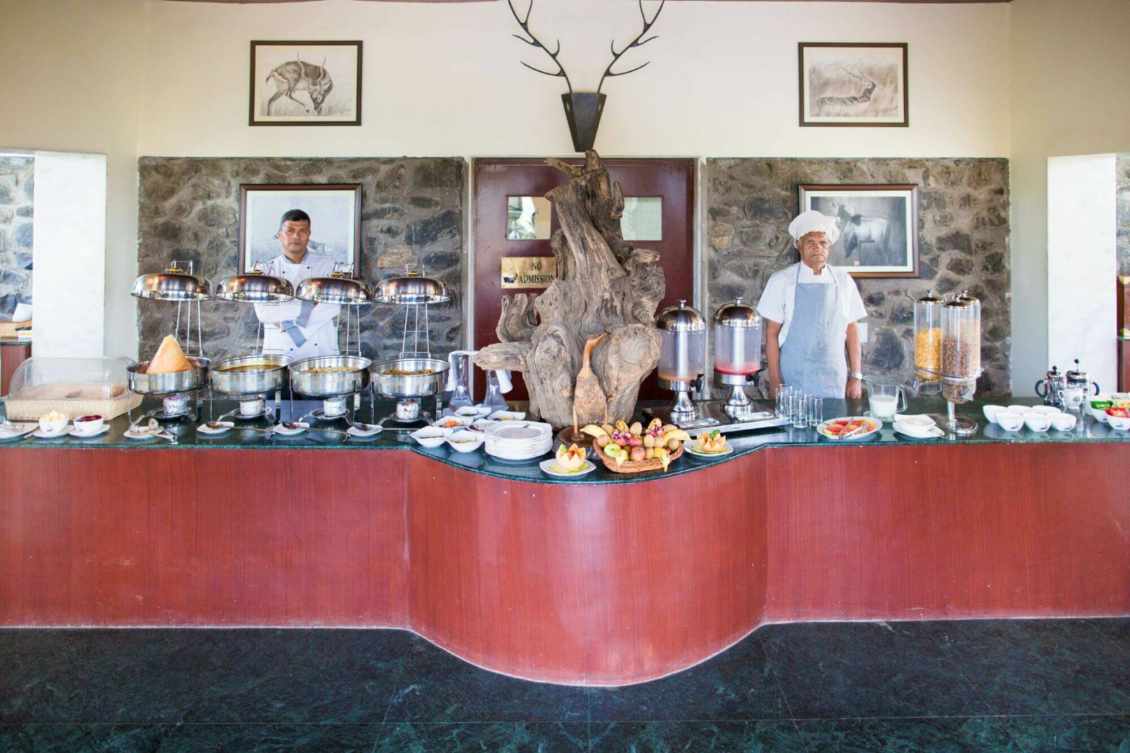 Die gemeinsamen Bereiche blicken direkt auf den Teich. Hier befindet sich eine gut sortierte Bibliothek, sowie einen gemütlich eingerichteten Lounge-Bereich und ein Speisesaal. Traditionell wird abends ein romantisches Buschdinner neben den alten Bäumen am Teich organisiert.