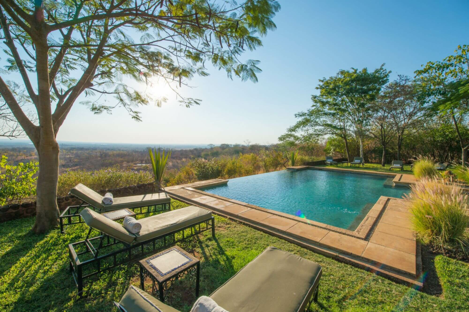 Anders als die meisten Lodges im Livingstone-Raum liegt die kleine Stanley Safari Lodge direkt am Flussufer, sondern auf einer Anhöhe im Landesinnere, ca. 3 km von den Fällen entfernt. Es bietet eine komfortable, für Livingstone sehr preisgünstige, hochwertige Lodge komplett abseits der Menschenmassen, aber dennoch sehr nah ran an die Vic Falls.