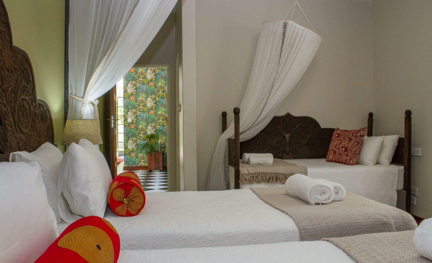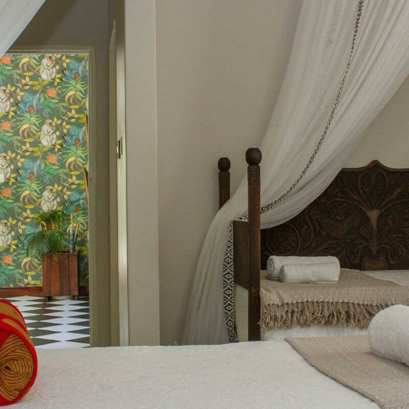 Gäste werden in kuscheligen Zimmern mit auffallendem Schachboden und einem fein geschnitzten Bettkopf untergebracht. Zu jedem Zimmer gehört ein Privatbad mit Badewanne und Kupferwaschbecken.