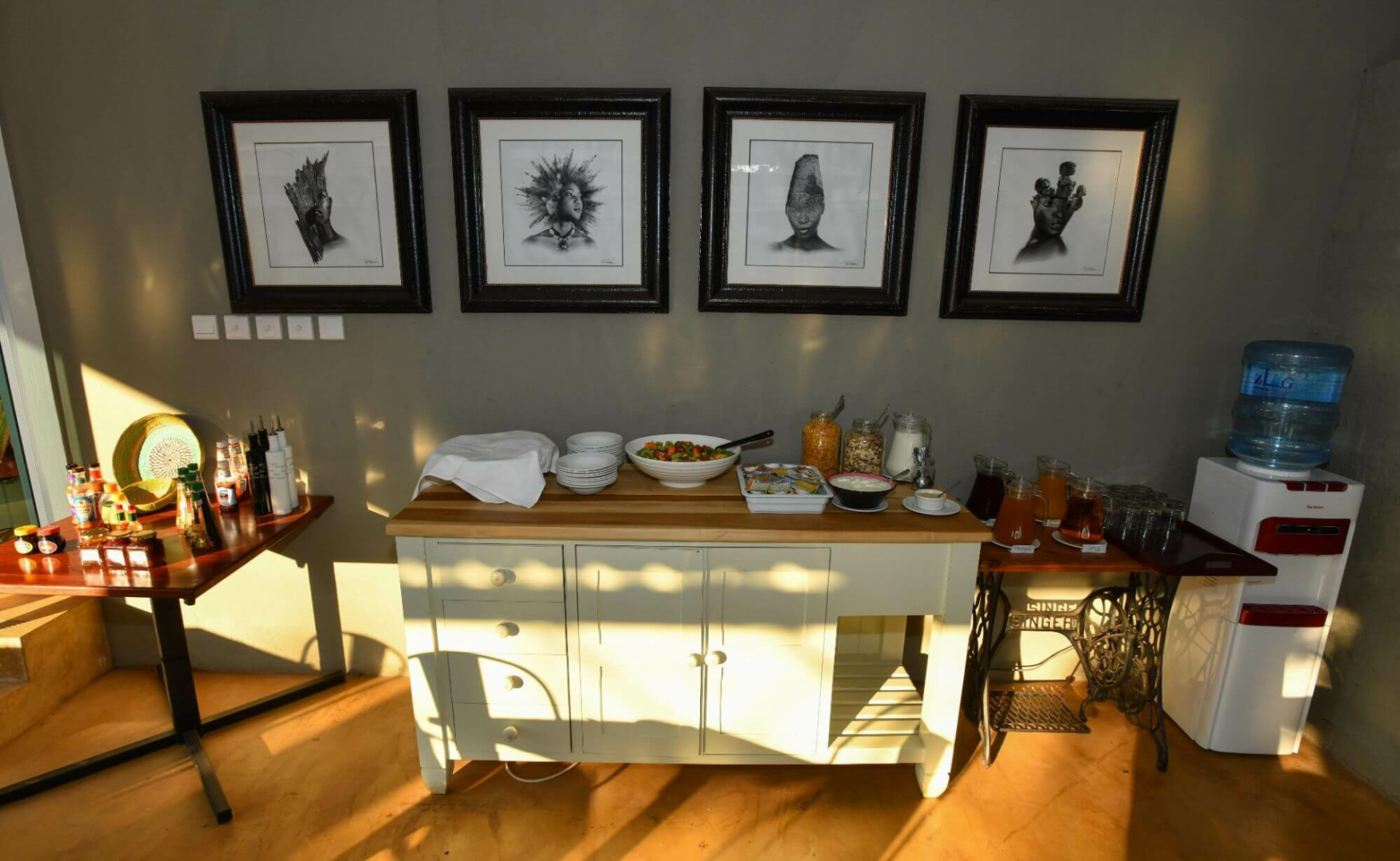 Das Gästehaus besteht aus mehreren Bauten, die sich um einen bescheidenen Pool anordnen. Die Hauptlodge ist ein größeres Haus mit großer Terrasse, wo man draußen mit Blick auf den Pool speisen kann, und inneren Restaurant-, Bar- und Loungebereichen. Die Einrichtung ist simpel, aber elegant und farbenfroh.