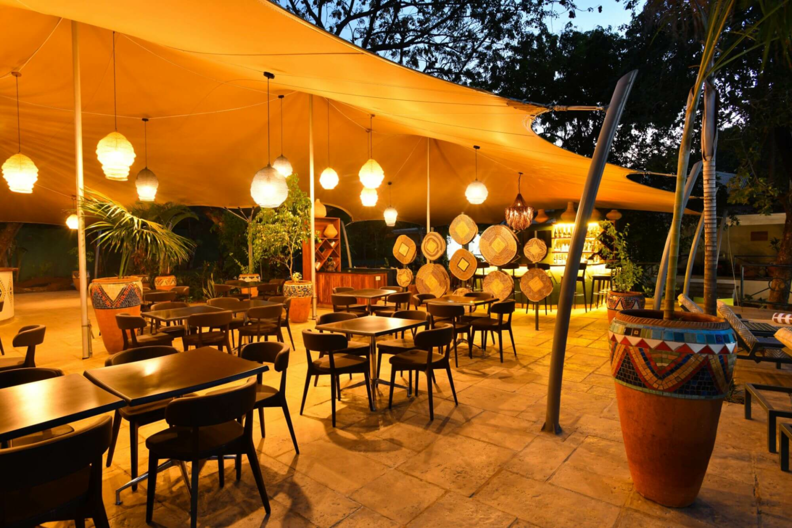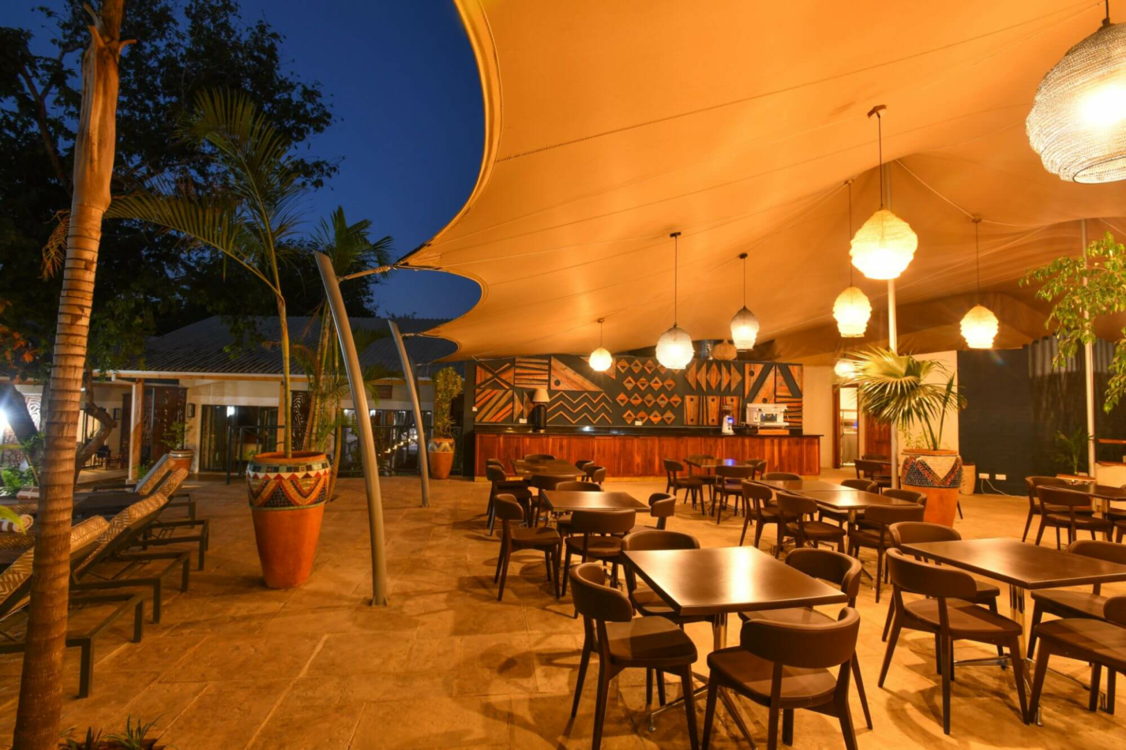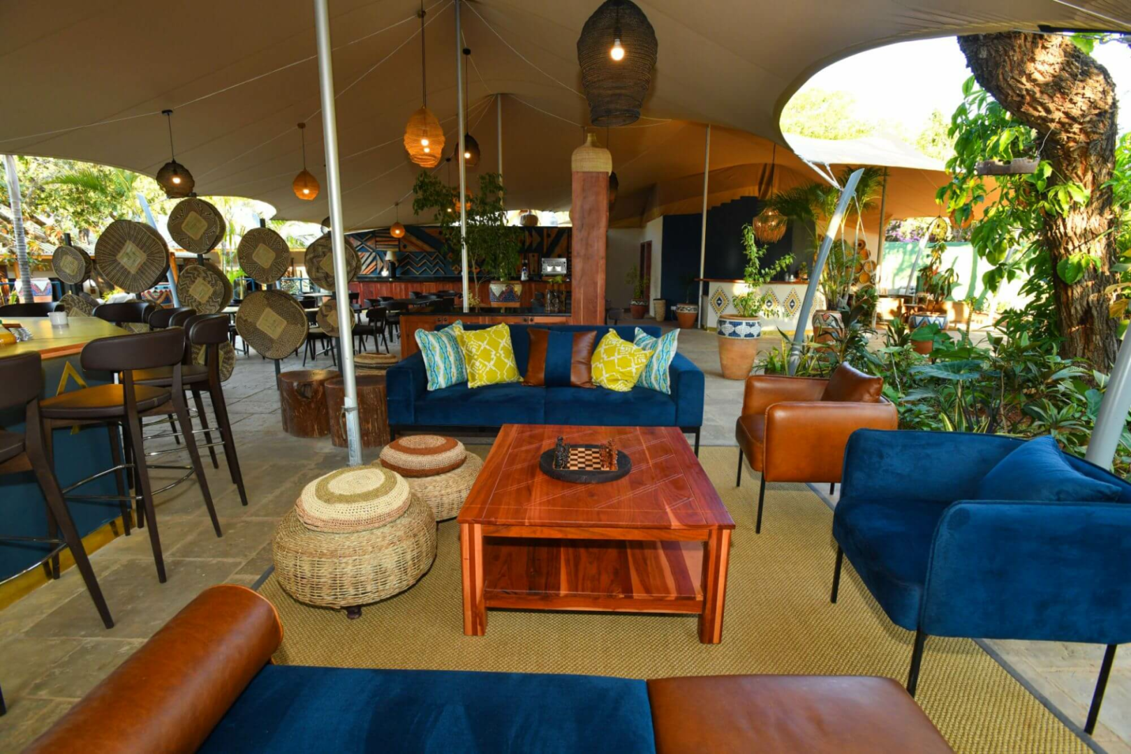Die Lodge besteht aus einem simplen großen Haus mit Blick auf die Terrasse und den Pool, wo die Zimmer untergebracht sind. Rechts vom Pool wurde ein offener Bereich unter Leinwand aufgestellt, wo es sich eine Feuerstelle, ein offener Restaurantbereich und Sitzmöglichkeiten im Freien befinden. Trotz des kleinen Preisniveaus von Shongwe Lookout ist die Einrichtung bis ins kleinste Detail durchdacht, von den schönen Hängeleuchten, die ein angenehmes Licht ausstrahlen, über die traditionellen Dekorelementen aus Rattan hin zu den eingebauten Keramikmosaiken an Wänden und Töpfen.