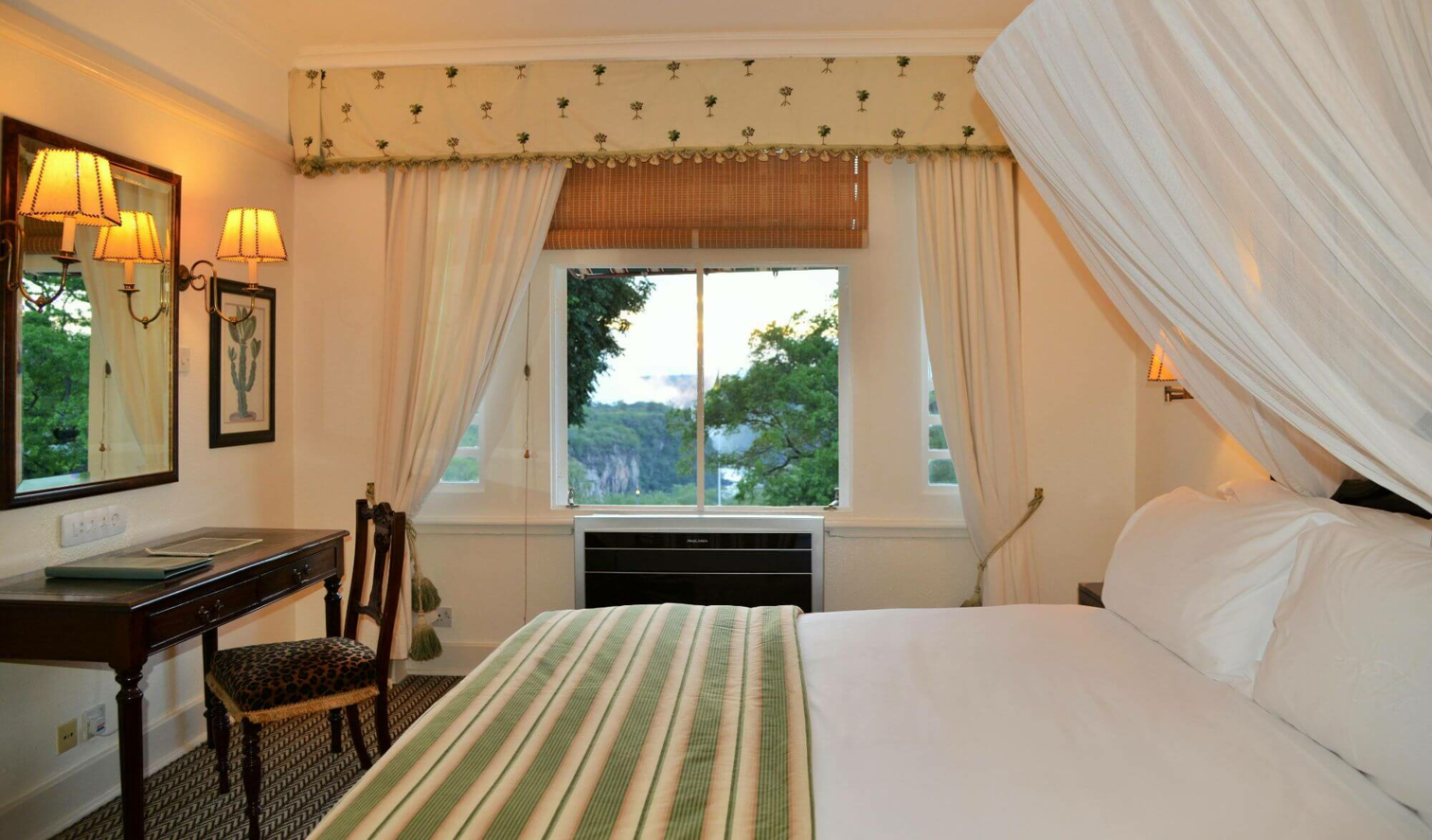 Wie seit über einem Jahrhundert ist diese klassische und beeindruckende Kolonialadresse eine der besten Bleiben in der Stadt. Alleine die Lage –das Victoria Falls Hotel ist das den Vic Falls am nächsten gelegene Hotel der Stadt- mit Sicht auf die Brücke, die die Sambesi-Flussschlucht überspannt, ist unübertrefflich. Inmitten von manikürt gepflegten Gartenanlagen erhebt sich das weiße Kolonialhaus im edwardianischen Stil wie ein Relikt aus alten Zeiten.