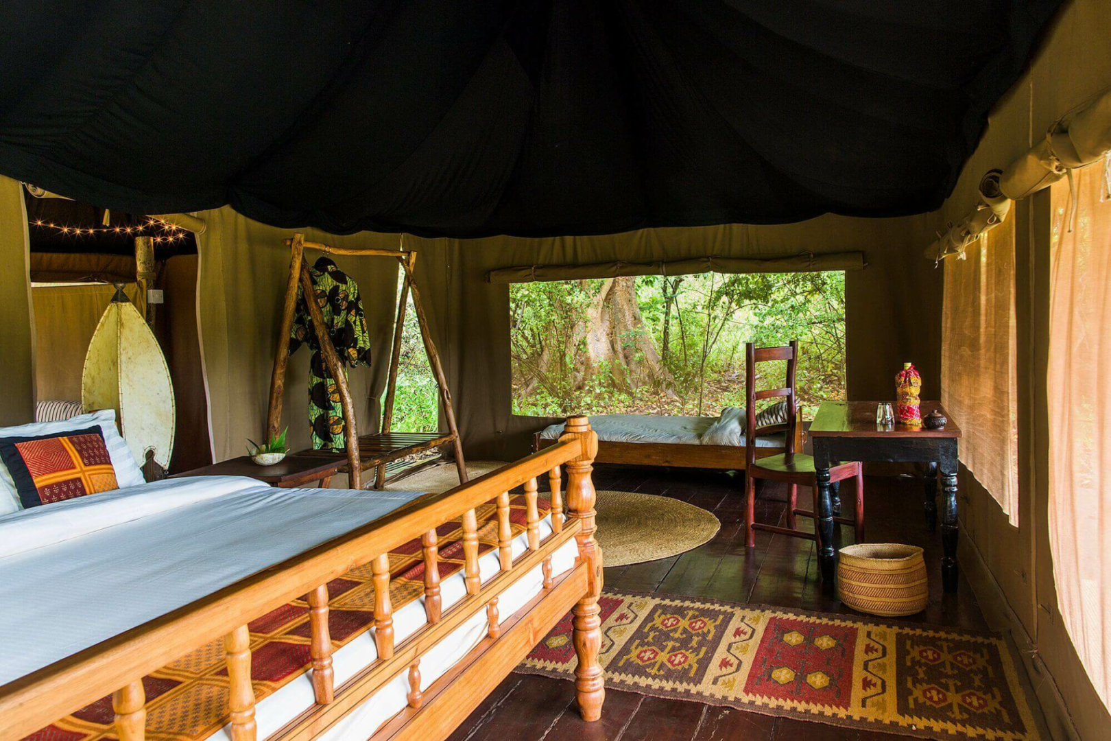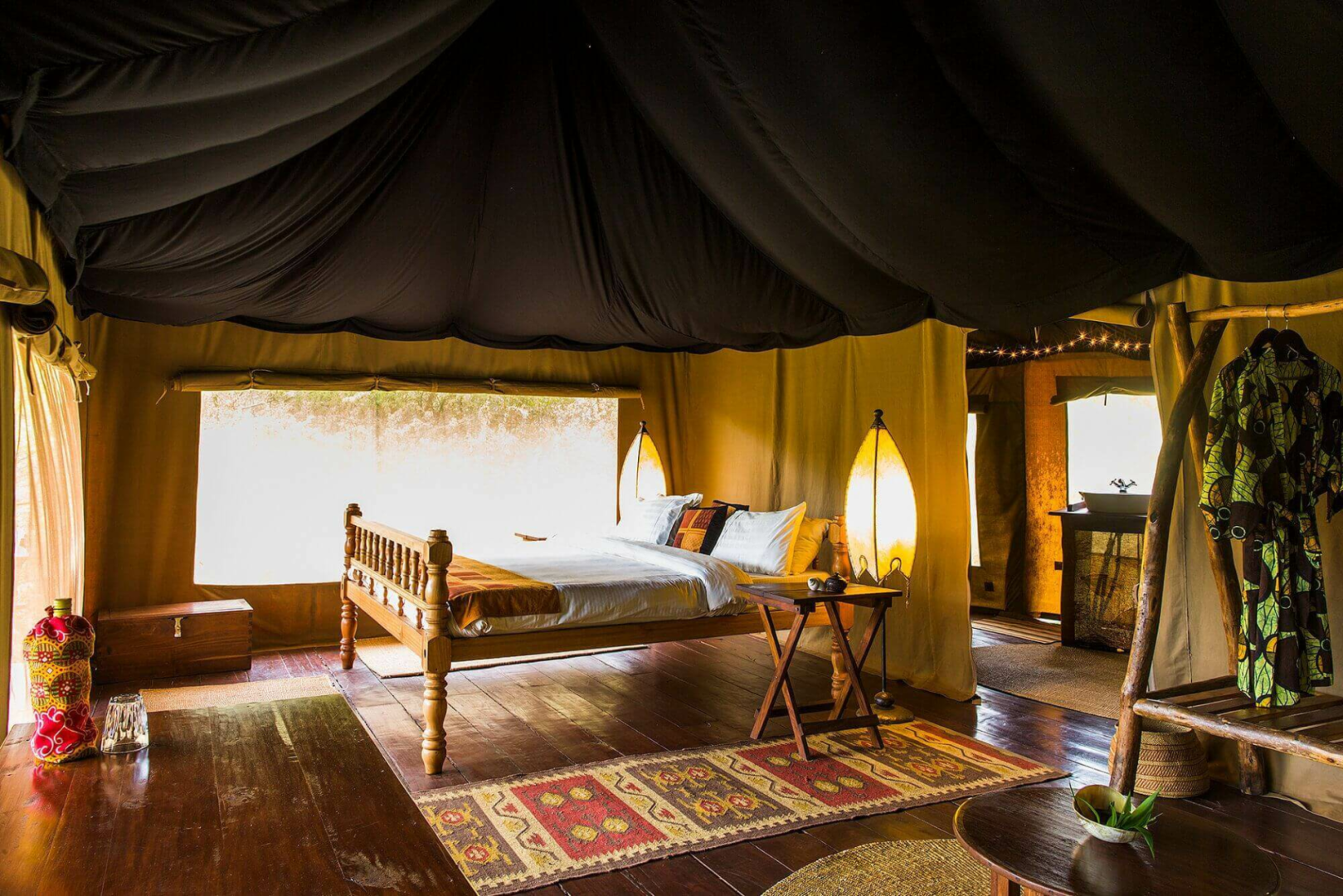 Die ca. fünfzehn Luxuszelte mit Wohnecke und privater Veranda sind liebevoll eingerichtet, die Verpflegung auf hohem Niveau.