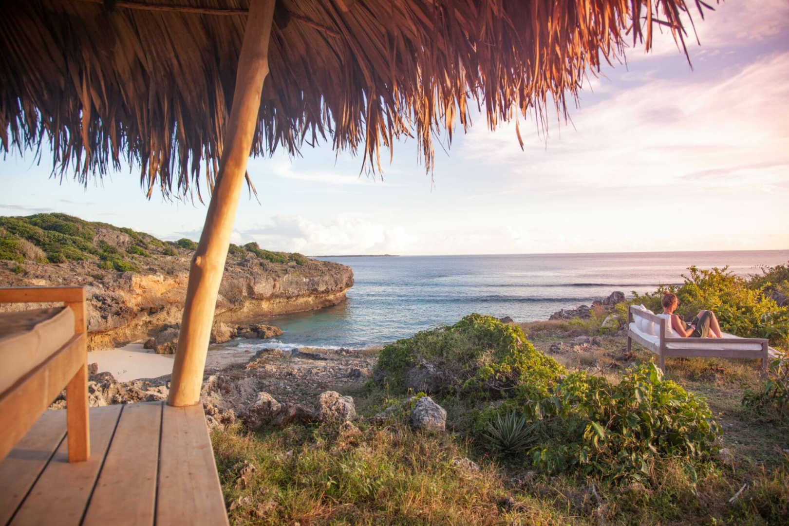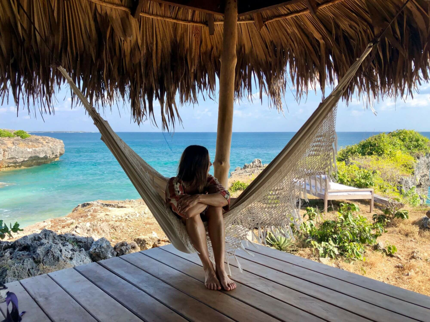 Zum Boa Vida Rote gehört auch ein schöner Gemeinschaftsbereich an der Klippenfront, von dem aus man die Bucht überblicken kann. Hier kann man Yoga praktizieren oder einfach mit einem Buch in der Hängematte entspannen.