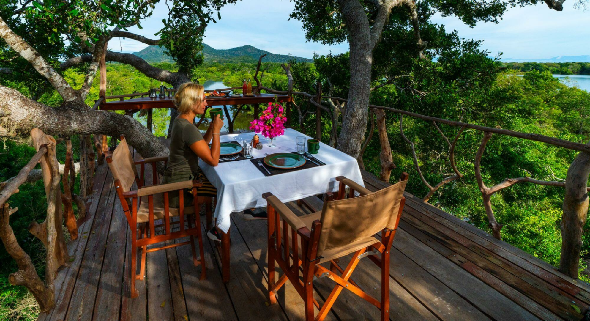 Herzstück des Camps ist das wundervolle Baumhaus, ein Deck, in der Spitze eines Baumes angelegt, das Yalas zweifellos Yalas romantischster Frühstücksort bietet.