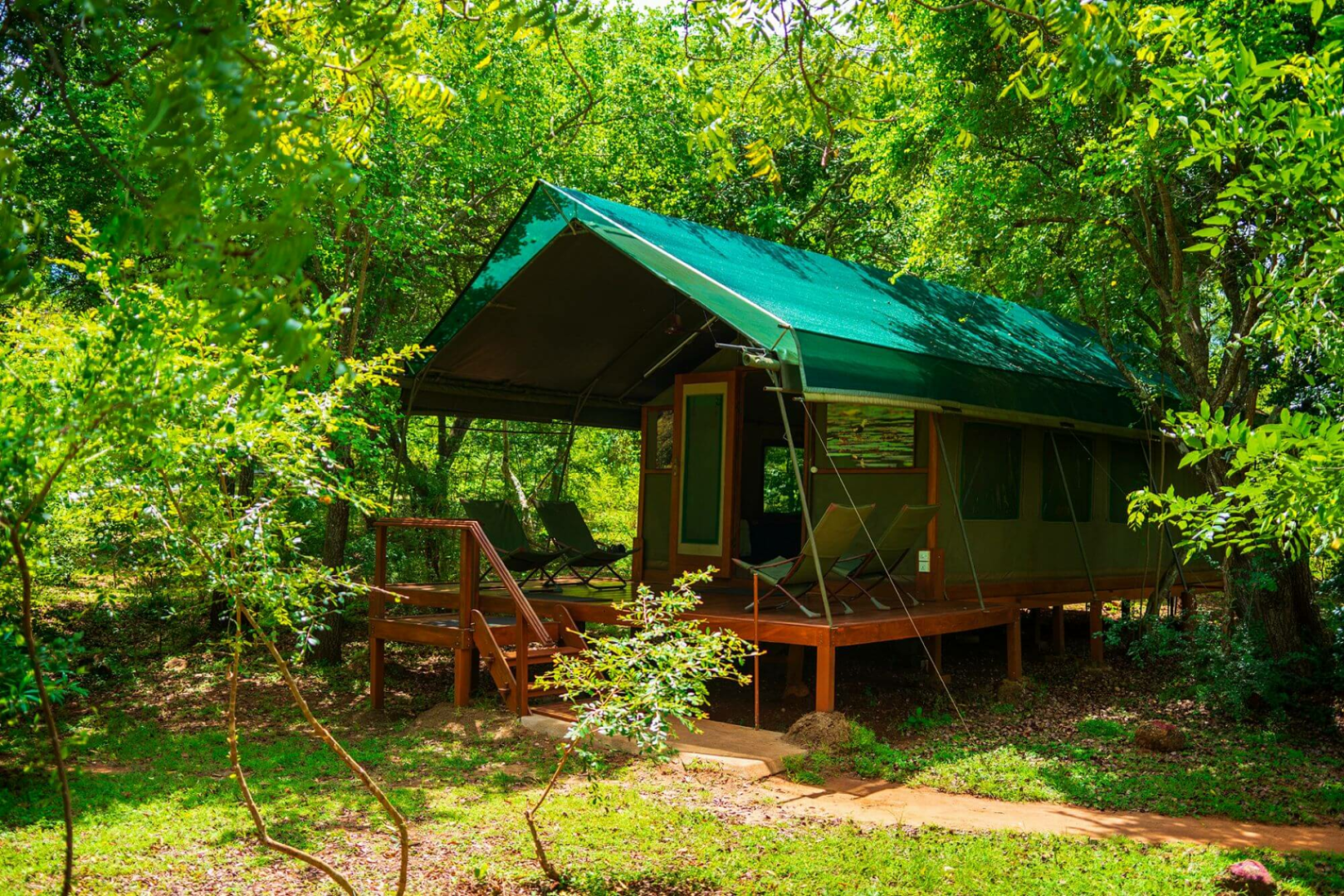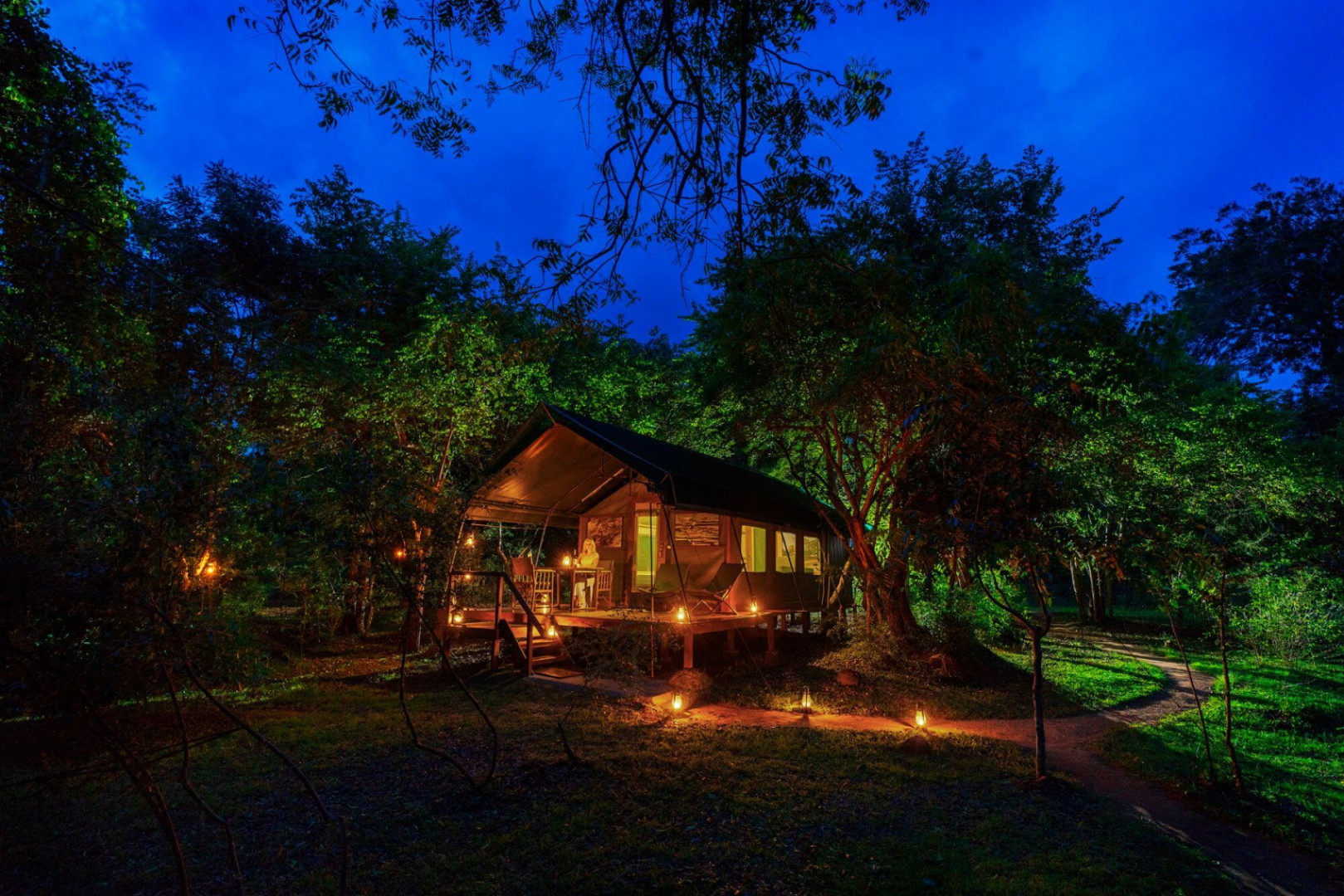 Das Camp selbst liegt in einem privaten Waldgebiet, das an den Nationalpark grenzt, und ist um einen großen, malerischen See herum angelegt, der häufig von Wildtieren besucht wird.